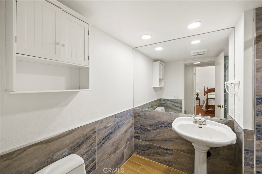 Welcome to Finisterra on the Lake, your own resort community overlooking beautiful Lake Mission Viejo. Enjoy great lake views from your living room and master bedroom deck, which also has convenient private stairway to the Lakefront. First floor location, spacious 2 bedroom 2 bath unit with formal dining room and separate dining nook, stepdown living room with customized fireplace open to view, Private Master bedroom suite with lake view patio. Bathrooms tastefully remodeled. Master bath features repurposed custom sink, huge walk-in shower, even a bidet. Extensive use of tile. Guest bath has also been remodeled. Parking features single garage and covered parking. Tile and hardwood flooring throughout. Community features association pool and spa, plus access to Lake Mission Viejo with its sandy beach, picnic areas, boating and fishing.