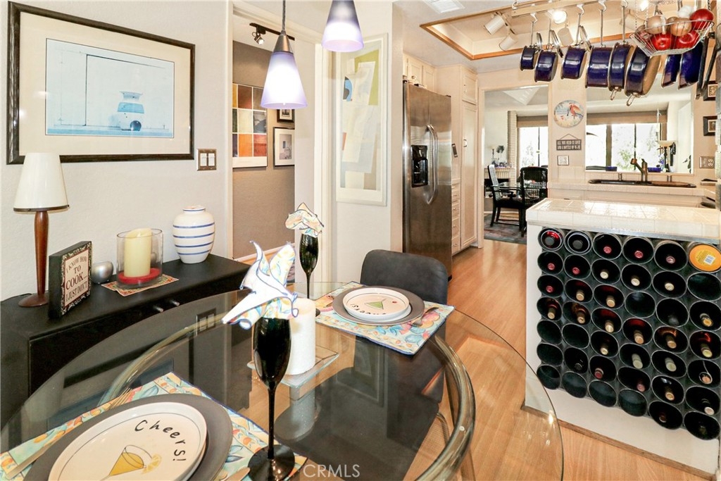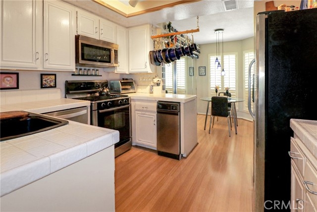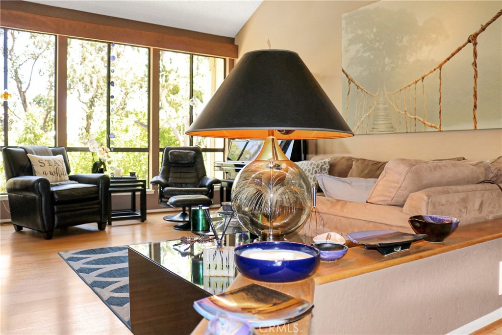 Looks like a magazine cover. You have to see it in person to experience it. You'll love the spacious home that is impeccably designed and maintained. Part of the famous Finisterra On The Lake community, this home has everything the area offers while providing a beautiful and secluded view. As one of the end units, you're off the beaten path so you can enjoy your privacy. Access to this unit is at ground level with only 2 steps so no stair cases. The home is in tip top shape featuring an upgraded kitchen with open wine storage, beautiful bathrooms, designer paint scheme and custom flooring. High quality Plantation Shutters throughout offer style and energy efficiency. Enjoy a barbeque on the patio that looks over the walking path and a portion of the lake. Your one car garage and assigned covered parking space are just outside the home for easy access. Tons of open parking make it easy for guests to visit. Finisterra on the Lake is a gated community with a pool, private beach, lakeside boardwalk, dog park, fishing pier and much more! Private boat slips inside the community are available to the homeowners. Lake Mission Viejo offers one of the most unique experiences in Southern California, offering one of the finest neighborhoods in the country and a spectacular lakeside community with restaurants overlooking the water, local shopping centers and community parks. Enjoy a world class lifestyle here at Lake Mission Viejo with great fishing, kayaking, boating, paddle boarding, summertime concerts, and holiday festivities. Many items in the home available for purchase, just ask.