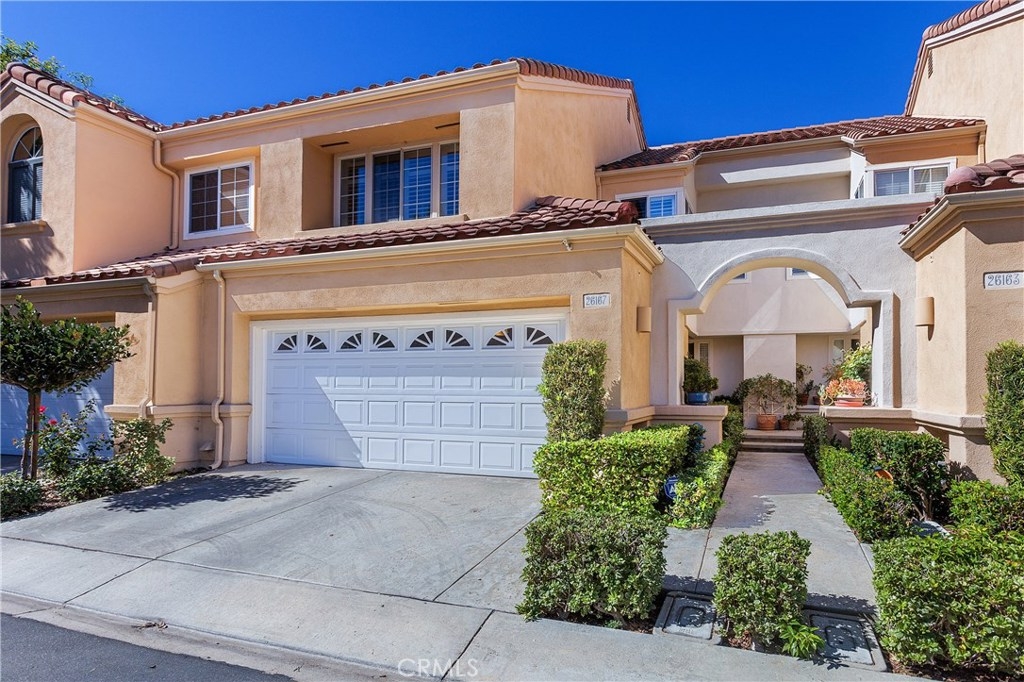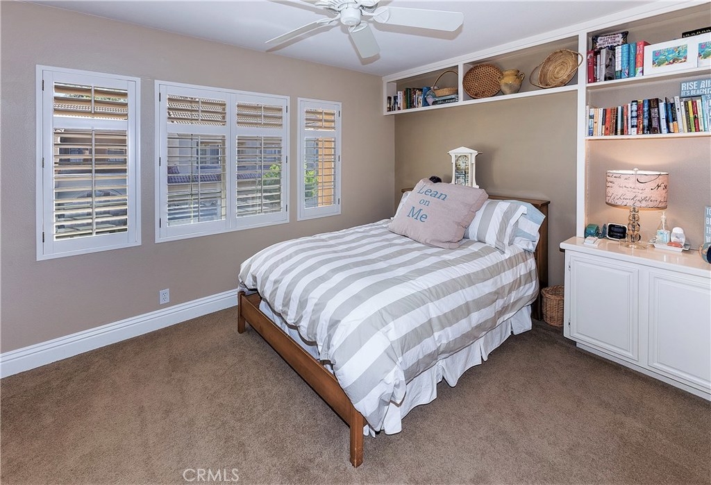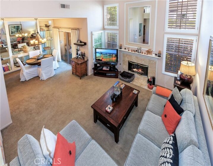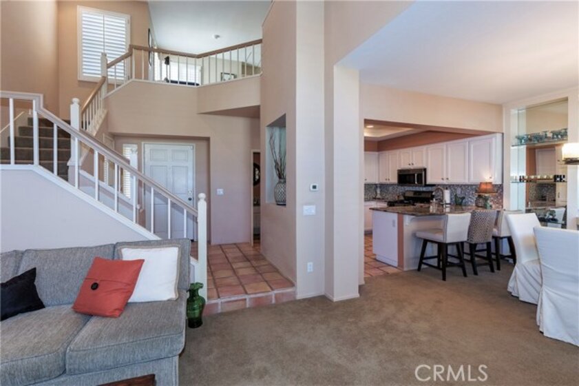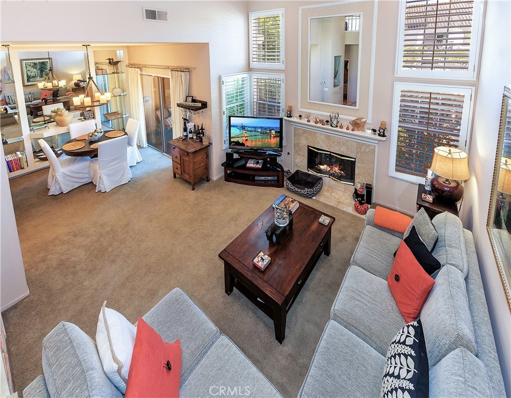 Beautiful Greystone home in best interior location! As you enter this lovely home you're greeted with a spacious entry open to Living room with Volume ceilings, Plantation shutters and dramatic fireplace. This area is open to separate Dining area w/Built-in shelving to display all your dishes & accessories. The kitchen, with large breakfast bar, has cheery white cabinets, Granite Counters, Custom backsplash, updated canned lighting and stainless steel appliances. There's a private patio adjacent, with plenty of room to bring the entertaining Outdoors! Upstairs are dual Masters, each with Ensuite baths, plus a spacious Loft. Attached 2-car garage has laundry area and plenty of cabinets for storage. Added bonus of New Heating/Air conditioner. Neighborhood can't be beat, with walking/hiking & biking trails within walking distance, and nearby Elementary school too. Low taxes and no Mello Roos.
