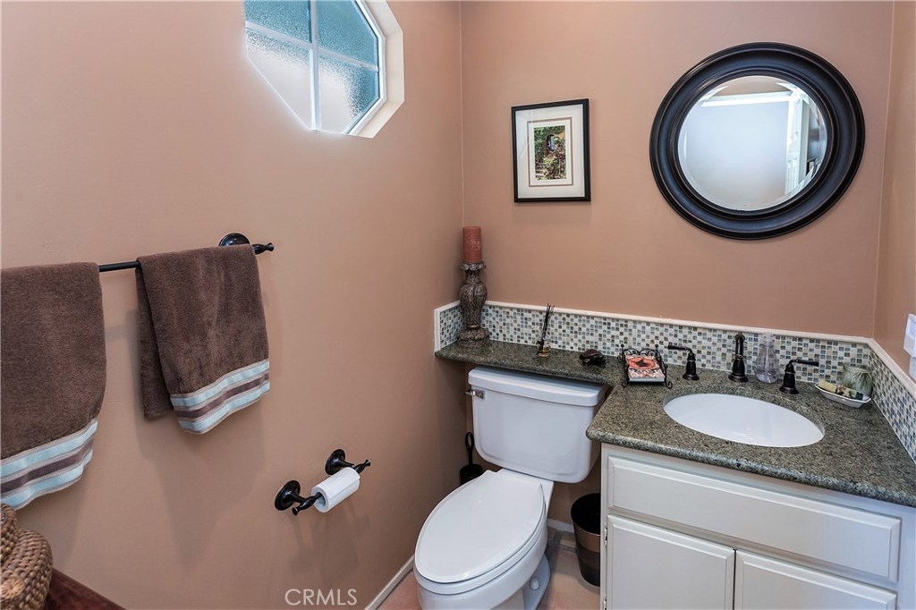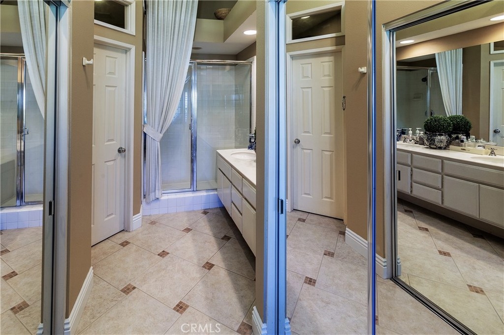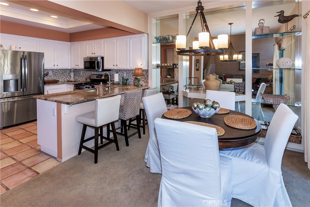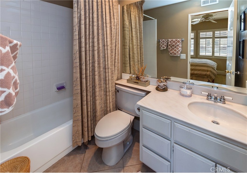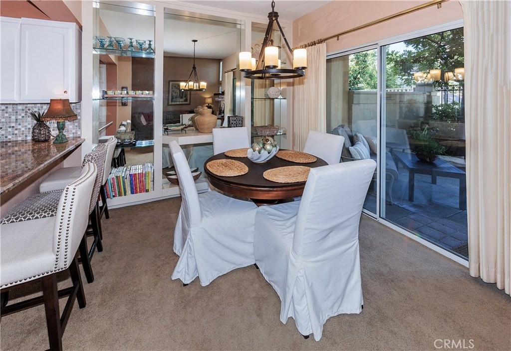 Beautiful Greystone home in best interior location! As you enter this lovely home you're greeted with a spacious entry open to Living room with Volume ceilings, Plantation shutters and dramatic fireplace. This area is open to separate Dining area w/Built-in shelving to display all your dishes & accessories. The kitchen, with large breakfast bar, has cheery white cabinets, Granite Counters, Custom backsplash, updated canned lighting and stainless steel appliances. There's a private patio adjacent, with plenty of room to bring the entertaining Outdoors! Upstairs are dual Masters, each with Ensuite baths, plus a spacious Loft. Attached 2-car garage has laundry area and plenty of cabinets for storage. Added bonus of New Heating/Air conditioner. Neighborhood can't be beat, with walking/hiking & biking trails within walking distance, and nearby Elementary school too. Low taxes and no Mello Roos.