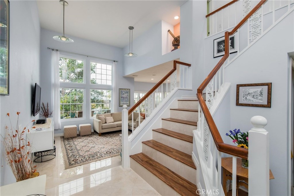 Enjoy spectacular sunsets from your uniquely upgraded European contemporary home in the prestigious Greystone community in Califia. Large open-concept end unit with soaring ceilings and a wall of windows bringing in lots of light while highlighting the fantastic views. Completely renovated with polished travertine flooring, new dual pane windows with plantation shutters, white kitchen cabinets and black granite counter tops, adding to the modern feel of this extraordinary home. Artist “nooks” set throughout the home are awaiting your own personal treasures. Upstairs you will find two Master suites and a loft which can be converted to a third bedroom. Updated bathroom with duel sinks and custom closets with tons of storage are located in one of the Master bedrooms. Plumbing and electrical have been upgraded, too! Your two car direct access garage with epoxy floors, built in cabinets and workbench are ready for your next project. Conveniently located near freeways, toll roads, award winning schools and Mission Viejo Lake... with all of its fabulous amenities. No Mello Roos! Bright, beautiful, this turn key home is ready and waiting for you!