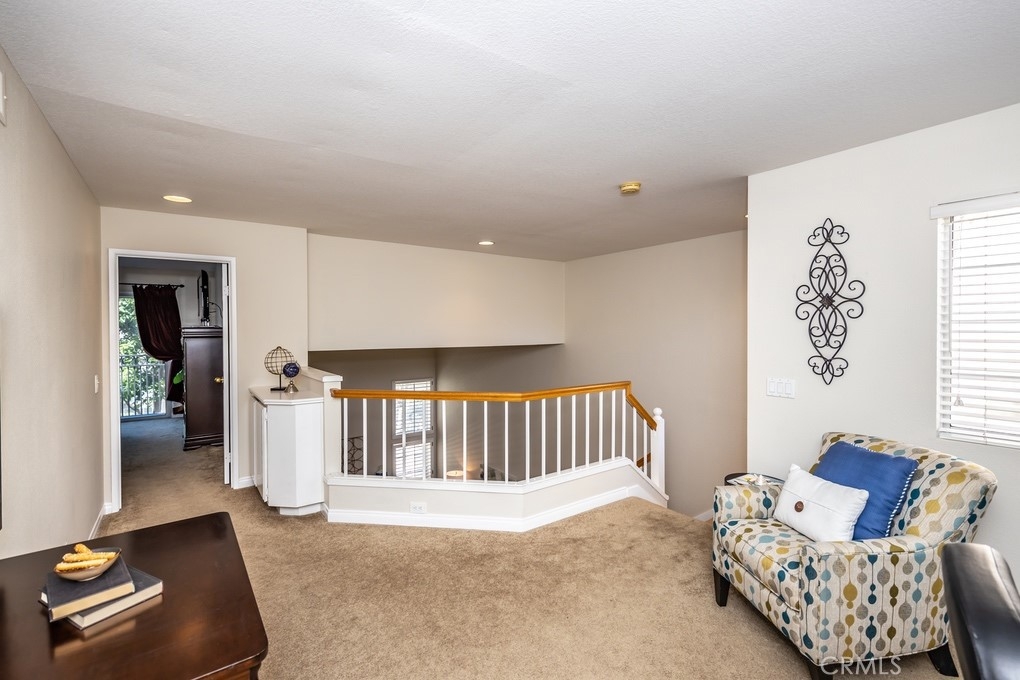 Welcome to this gorgeous home with Lake Mission Viejo membership eligibility in the highly sought-after Califia community in Mission Viejo. Nestled on a little cul de sac street within this quaint community. This attached single-family residence home has everything you are looking for. Entering the home, you are greeted by high ceilings and great natural lighting coming in from all the windows. The living room features plantation shutters, carpet, and a gas fireplace with a stone hearth. The dining room features tile flooring, recessed lighting, crown molding, and a glass sliding door leading to the relaxing outdoor patio with tile flooring and a small greenbelt separating the patios across the way. The kitchen features granite counters with a breakfast bar, stainless steel appliances, recessed lighting, crown molding, and lots of counter space and cabinets. The downstairs guest bathroom features tile flooring and granite counters. Continuing upstairs you have a spacious loft great for a seating area or an office with nice natural lighting. The first master bedroom features carpet, a ceiling fan, dual closets, and a glass sliding door leading to a cozy balcony. The master bathroom features dual sinks with granite counters, an enclosed private toilet room, and a beautiful walk-in tiled shower with a built-in seating bench. The second bedroom with an ensuite is on the other side across from the loft for extra privacy between bedrooms. The second bedroom features carpet and a ceiling fan. The ensuite bathroom features tile flooring, granite counters, and a beautifully tiled shower in tub. Two-car garage with direct access and washer and dryer hook-ups. Greystone association pool and spa along with Lake Mission Viejo membership which offers activities such as boating, fishing, concert events, and outdoor recreations. Rental reservations include party boats, picnic areas, and a clubhouse. All within a short distance to great schools, shopping, and restaurants.
