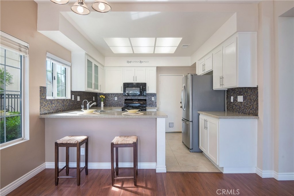Glorious Greystone Community! One of the best locations in Mission Viejo. 3 bedroom 2 ½ bath townhome, end location with panoramic view lot towards Saddleback Mountain. Enjoy the morning sunrise (this is the view I want!) so you can enjoy your patio in the afternoon shade. Kitchen opens to the Family room and out to the patio. City light views from the Master bedroom and balcony. This home is in immaculate move-in condition. Lots of storage and cabinet space and a breakfast bar! As you can see by the photos, this home has been upgraded. Open floor-plan with lots of light, vaulted ceilings and direct garage access. This is an end location attached on one wall. There is a driveway but we must measure, it may be for a compact car. Nearby guest parking. Enjoy this quiet community with its own pool area. Residents have membership to Lake Mission Viejo that offers recreation and activities all year round!