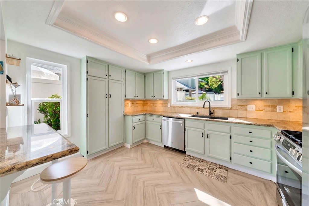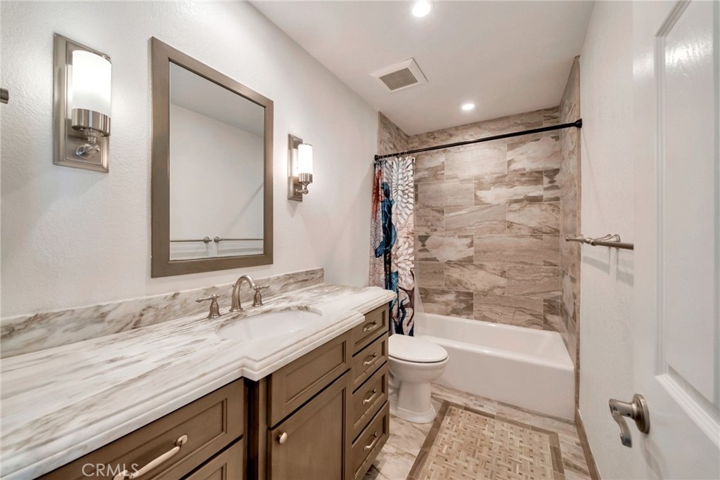 Welcome to 27725 Falkirk, this stunning 3 bed 2.5 bath townhouse features a yard bigger than some single family homes that connects to a peaceful greenbelt, a brand new roof, all new windows, and upgrades throughout the home. Entering the home you have an open and functional floor plan, with vaulted ceilings in the living room, and tons of natural light. Upstairs you have a spacious primary bedroom, with a beautifully remodeled and modern bathroom, a walk-in closet, and 2 more bedrooms sharing an upgraded bathroom. Another key feature to not miss in this home, is the spacious 2 car garage with custom built-ins providing a dedicated space to neatly store everything. As part of the HOA, residents enjoy exclusive access to a pool, spa, and additionally everything Lake Mission Viejo has to offer. This home is move-in ready and a must see!