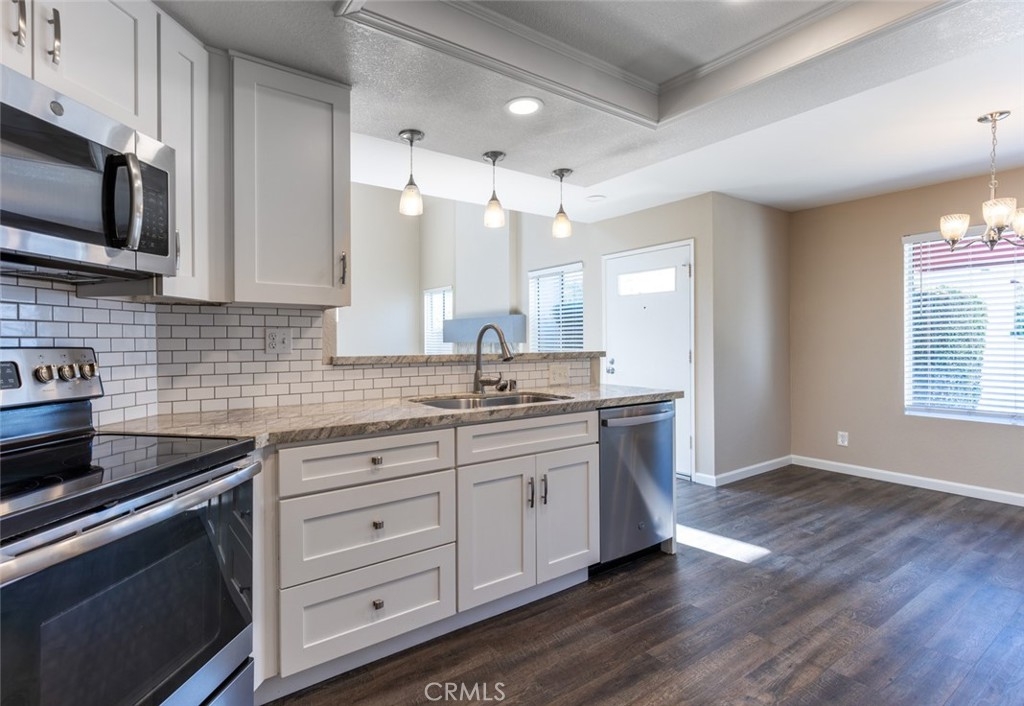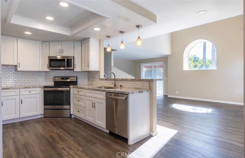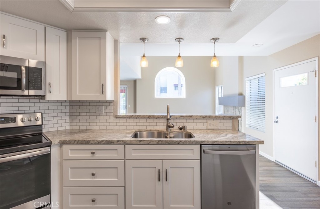 Highly sought-after two-story condo, end unit with a wrap-around yard in a great location. This Lite and Brite unit has beautiful vinyl plank flooring throughout the main floor level, stairs, and upstairs hallway, with new carpet installed in the bedrooms. The house has been remodeled with new kitchen cabinets, countertops, stainless steel appliances, can lighting, and lighting fixtures. The bathrooms have newer vanities and toilets. The interior has just been repainted. This open floor plan has a custom fireplace and high ceilings. This floor plan also allows for a study /office area on the main floor. There is a one-car attached garage with direct access, plus one parking space. This beautiful community has a resort-like pool, spa, and BBQs. You also have Lake Mission Viejo privileges. All the units in the community have been repiped. There is a low tax rate and no mello roos. It is in a fantastic location close to the Shops at Mission Viejo, Saddleback College, Mission Hospital, restaurants, and movie theaters at the Kaleidoscope—as well as easy access to toll roads and the freeway.