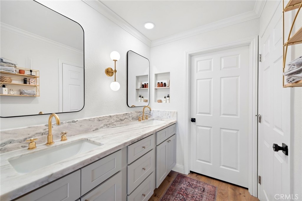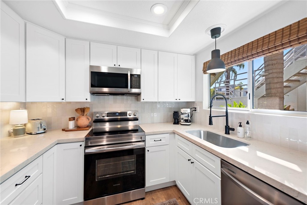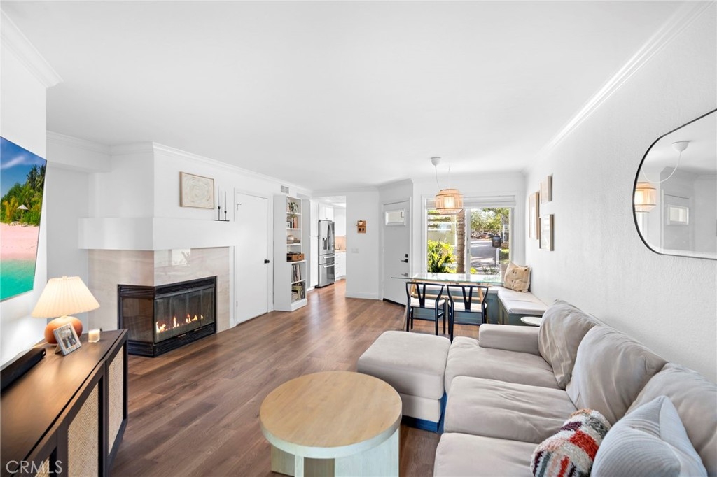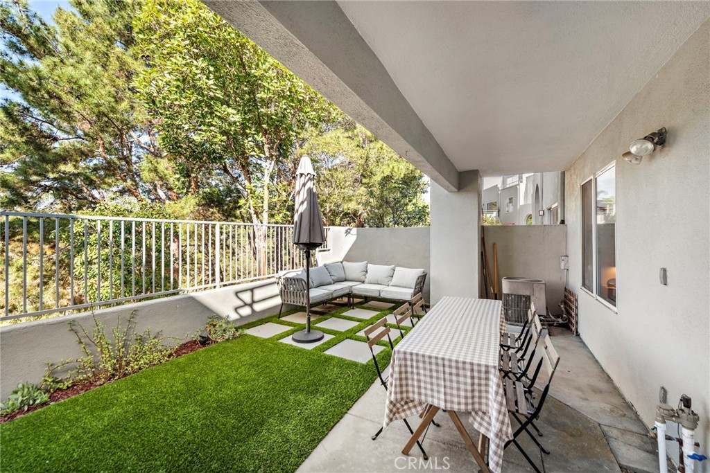 Welcome to this beautiful home situated in a premier location in the highly sought after neighborhood of "Hillcrest Village". This gorgeous single level property has no steps to the unit and is a ground-floor unit. This 2 bedroom and 1 1/4 bathroom property has been gorgeously remodeled, updated throughout and "Re-Piped" within the last year! Some of the property's updates include: LVP Flooring throughout the home, Brand New Kitchen Appliances and Quartz Countertops. Stunning Bathroom Updates include: Double Sink Vanity surrounded by Gorgeous Marble Countertops, as well as, Marble Floors in both Bathrooms and a Large Walk-In Closet, too. The Open and Spacious Living Room features a Beautifully Remodeled Fireplace with Porcelain Tile decorating it, as well as, a lovely bench seating for the Dining Area with a built-in storage space. As You Enter the Backyard, You will see a Gorgeous Nature View while walking onto paved concrete and following the concrete is Turf with beautiful plants surrounding the perimeter of the yard. The Backyard also has a brand new drip system as well as ample space for wonderful outdoor living with breathtaking views of city lights & trees. The home includes a Large 1 car garage as well as 2 parking passes per household plus a Guest pass. It is a member of Lake Mission Viejo....Come see this immaculate property today, it is truly stunning!