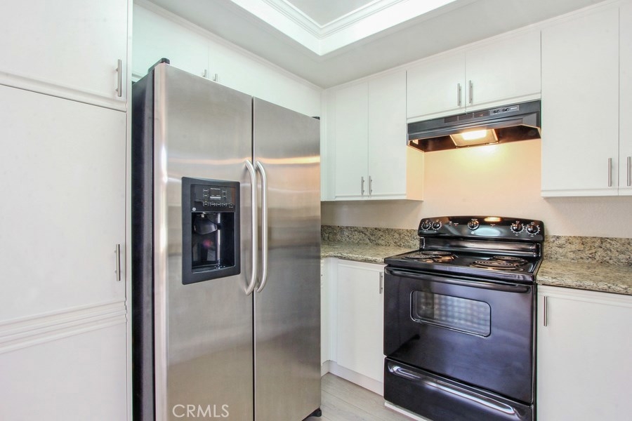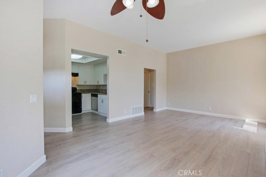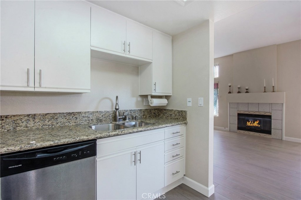 Remarkable location close to restaurants & shops. Advantage of an upstairs unit where no one is above or below. One bedroom plus a 2nd bedroom/den. Beautiful complex with newly painted exteriors. Carriage unit with garage below and no one above. The living room is exposed to plenty of natural light that extends brightness through out the entire unit. Large living room/dining room combo with high ceilings and an exquisite fireplace, white kitchen cabinets with elegant granite counter tops, smooth ceilings, freshly painted interior, new wood laminate flooring through out the living room/dining room, and large master bedroom with closet. In-unit laundry included. An enclosed one car garage is located at the end to the right as you face the unit. Ready to move in. Highly desirable location near Mission Viejo mall, shopping centers and schools such as Saddleback college. Easy access to freeways.
