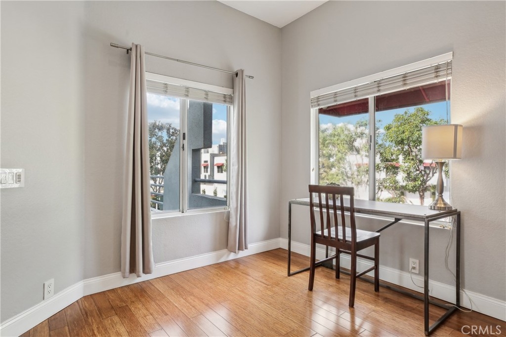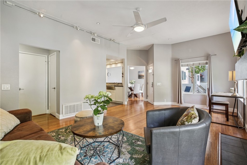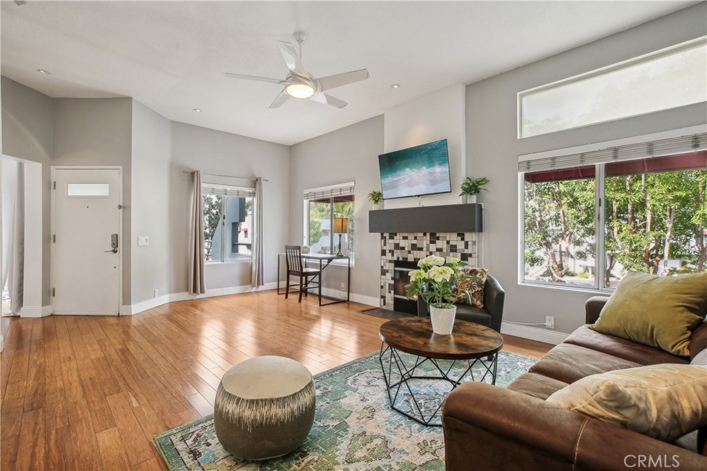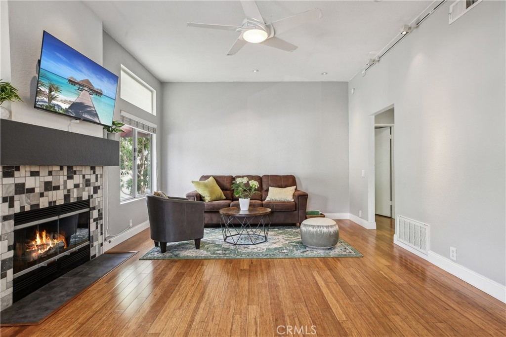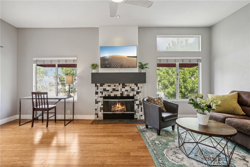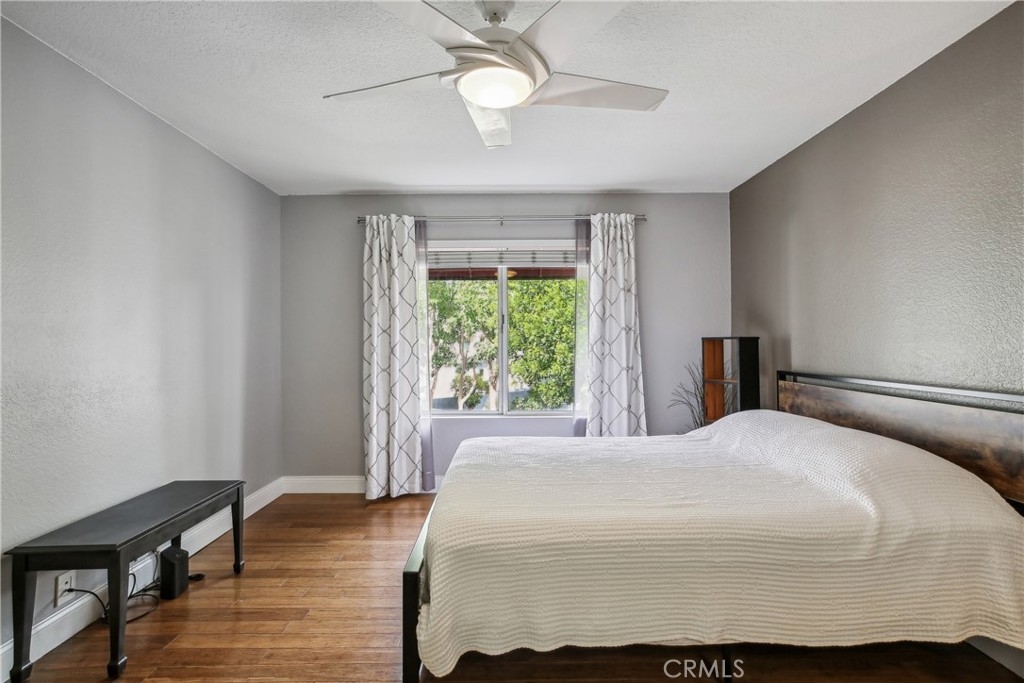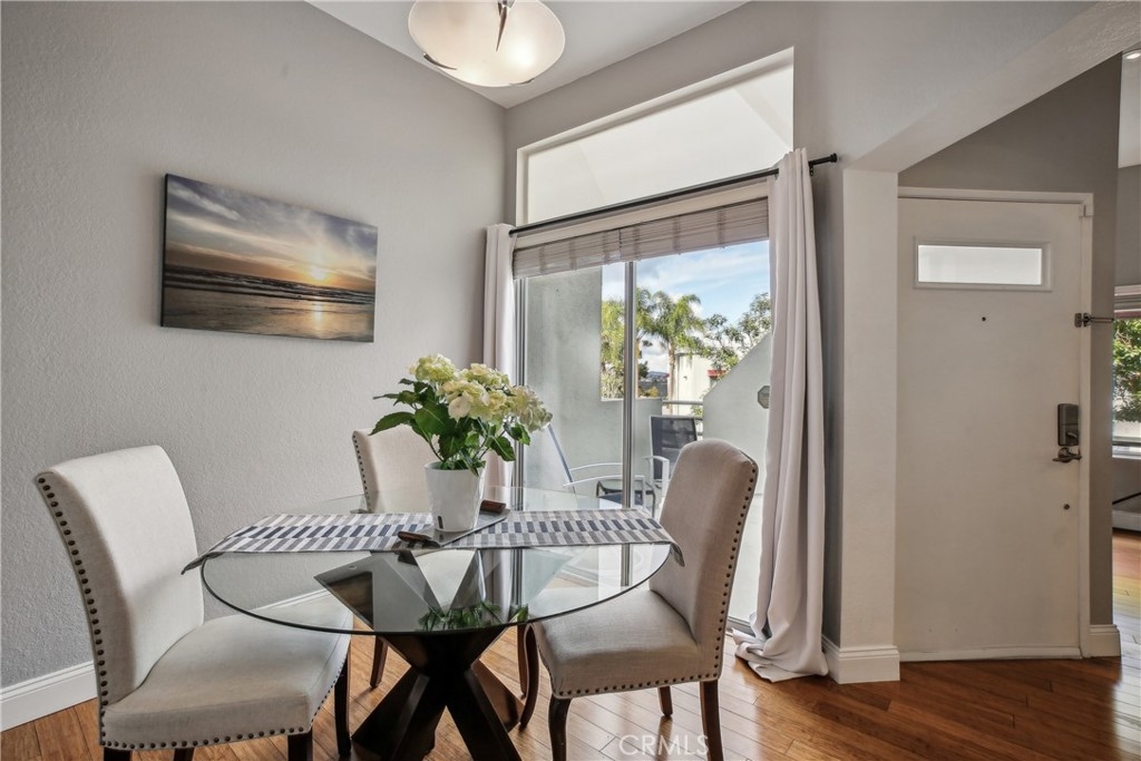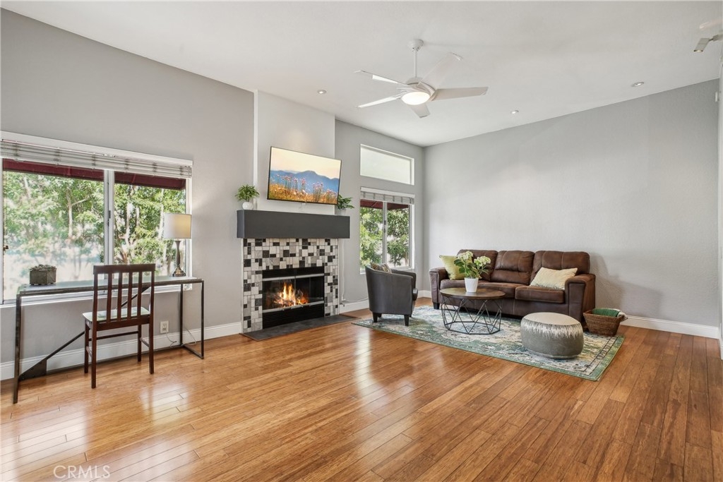 This remodeled 1-bedroom, 1-bath upper-unit home features bamboo flooring and a bright open layout. The updated kitchen boasts granite countertops, a tile backsplash, recessed lighting, and new stainless steel appliances. Enjoy a spacious primary bedroom with a walk-in closet and a fully renovated bath. Current dining room is convertible into a child's bedroom or office! Relax on the private patio with stunning sunset views and gas outlet for barbecuing. Includes a detached garage, two parking permits, association pool, spas, greenbelts, and barbecues. Located near Mission Viejo Mall with Lake Mission Viejo membership. Move-in ready and waiting for you—make it yours today!