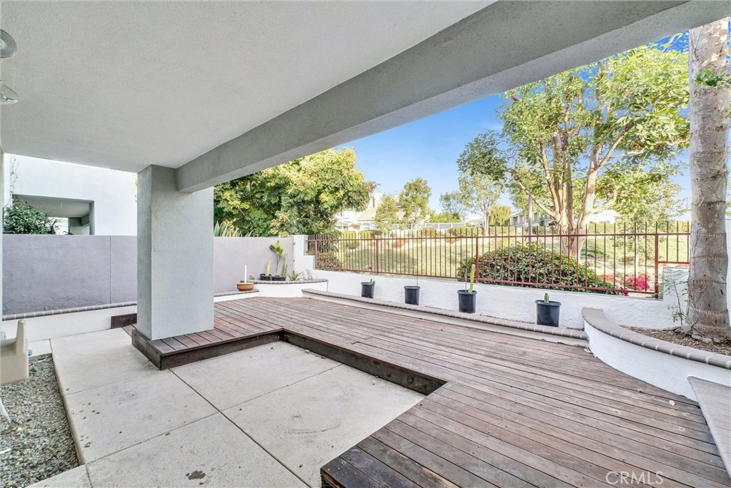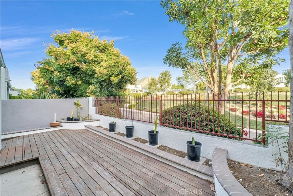 Welcome to this beautifully 2-bedroom, 1-bathroom condo, perfectly situated on the first floor. This turnkey home boasts a host of modern features and new paint throughout. Step inside to discover a seamless blend of tranquility and functionality with tile flooring throughout. The inviting living area is centered around a cozy fireplace, perfect for relaxing evenings or entertaining guests. The generously sized backyard is a standout feature, offering ample space with an oversized wood deck. Outdoor enjoyment awaits including gardening, barbequing, or entertaining guests. Additional perks include a convenient one-car attached garage providing easy access and extra storage. As part of a vibrant community, you'll enjoy access to a gorgeous pool and spa. Residents also have access and privileges to use the amenities offered at the beautiful Lake Mission Viejo. This condo is perfectly positioned near major freeways, Mission Viejo Mall, picturesque trails, and Saddleback Community College. Plus, you’re just 10 miles from the beach, ensuring both relaxation and recreation are always within reach. Don’t miss the opportunity to make this exceptional condo your new home.