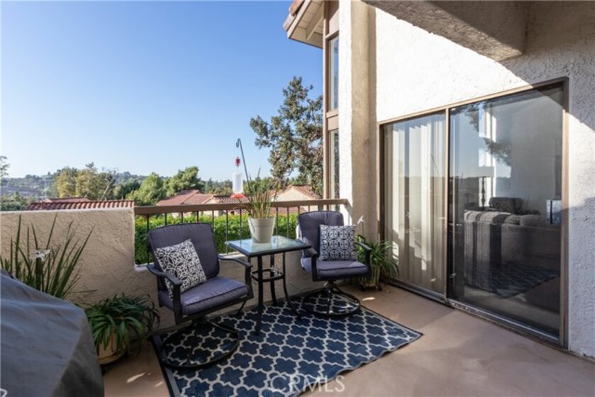 LOCATION MATTERS MOST and this property has it! End unit in last building on shortest cul-de-sac in La Mancha. Spectacularly panoramic views of Saddleback Mountain and Valley. This Cervantes model has TWO additional view facing windows in the living room. The view and the light pour in. As an end unit even with all these windows you still have PRIVACY and quiet. This naturally dramatic floor plan has been updated with stunning wood style tile in downstairs living areas, the ultimate combination. Living room and bedrooms have warm cozy carpet. Other updates include: PEX plumbing throughout, tankless water heater, recessed lighting, granite counters in kitchen and granite surrounds in bathrooms. Roomy direct access two car garage allows for a lot of storage. Several nearby community walking paths and a lot of open greenbelt. Convenient location...easy access to major freeways & toll roads, markets, restaurants, Shops at Mission Viejo and Saddleback College and Hospital. A great place to call home.