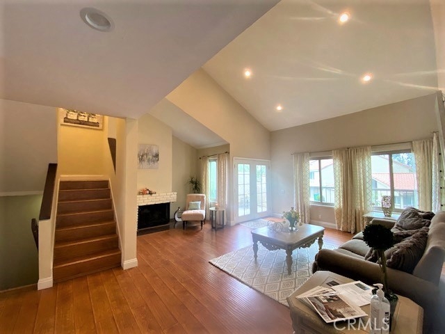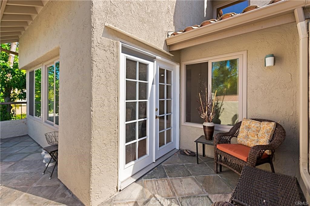 Back on the market subject to cancellation of escrow., Highly upgraded corner unit La Mancha with 3 spacious bedrooms and 3 full baths. One of the best buy in the area with one bedroom and remodeled bath downstairs. New Milgard dual-pane windows throughout the house. newer wood floors and paint. Newer white kitchen cabinets and granite counters with a custom backsplash newer sink and plumbing. Living room with vaulted ceilings and brick fireplace. French doors open to a cozy balcony with a view of trees and city. The large family room/dining room with a wet bar opens to a large private backyard. Two cars attached garage plus one assigned parking space. Large master bedroom with a newly remodeled bathroom with dual vanities and a shower. Spacious second bedroom with mirrored closets. The second bathroom upstairs has been remodeled too. Association pool, close to Fwys and Saddleback college and Mission Hospital, Mission mall, and restaurants. A must-see. This is a PUD.