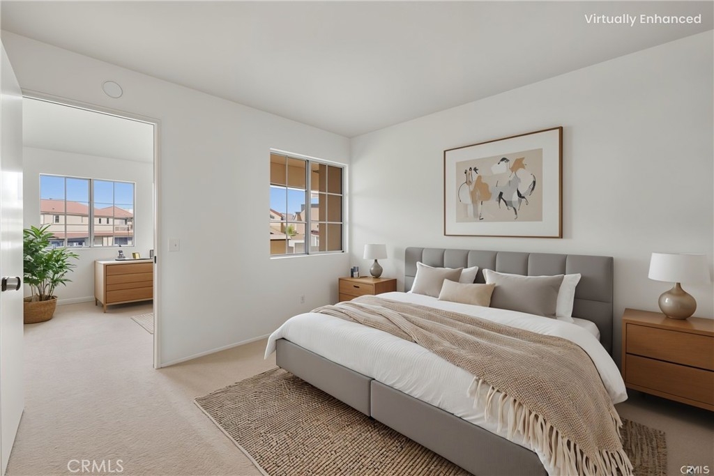 BACK ON THE MARKET, BEAUTIFULLY REMODELED MISSION VIEJO CONDOMINIUM-2 Master Suites- 2nd Floor END-UNIT located at Las Palmas Community near Craycraft Park. Welcome to this charming, recently improved condominium located in the heart of Mission Viejo. This thoughtfully designed home features two spacious bedrooms, each with its own end-suite bathroom, creating the convenience of dual master suites- Perfect for privacy, guests, or shared living. One of the Suites offers a walk-in closet, adding exceptional storage and functionality. Livingroom has vaulted ceilings creating a spacious living area with a PANORAMIC VIEW OF SADDLEBACK MOUNTAINS. New closet drawers in master bedroom, new laminated wood floors in bathrooms, new stove and dishwasher, contemporary fixtures, and an inviting open layout that maximizes space and natural light. Carport & parking space #338 are both close by. Association has 24 hrs Security, two community pools and a clubhouse. Close to shopping, dining, parks, and all of Lake Mission Viejo has to offer, including fishing, boating, kayaking, summer concerts, family picnics. Association dues include: Water and Trash, the only utility you pay is electricity. Dog park and park within walking distance, close to Saddleback College and a few minutes by car from Laguna beach, near the 5 FWY. Don't miss this wonderful opportunity to own a turnkey home in one of Mission Viejo's desirable areas! ** All furniture is virtually staged**