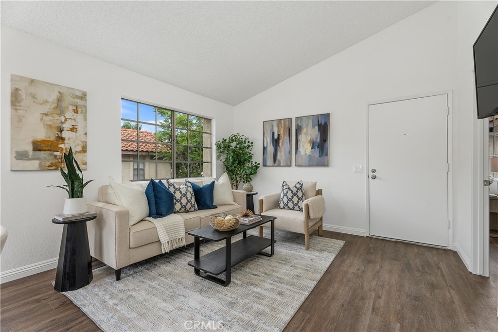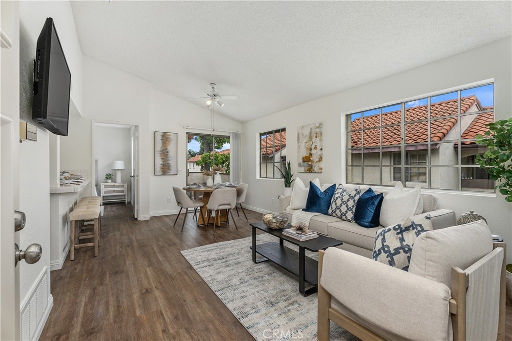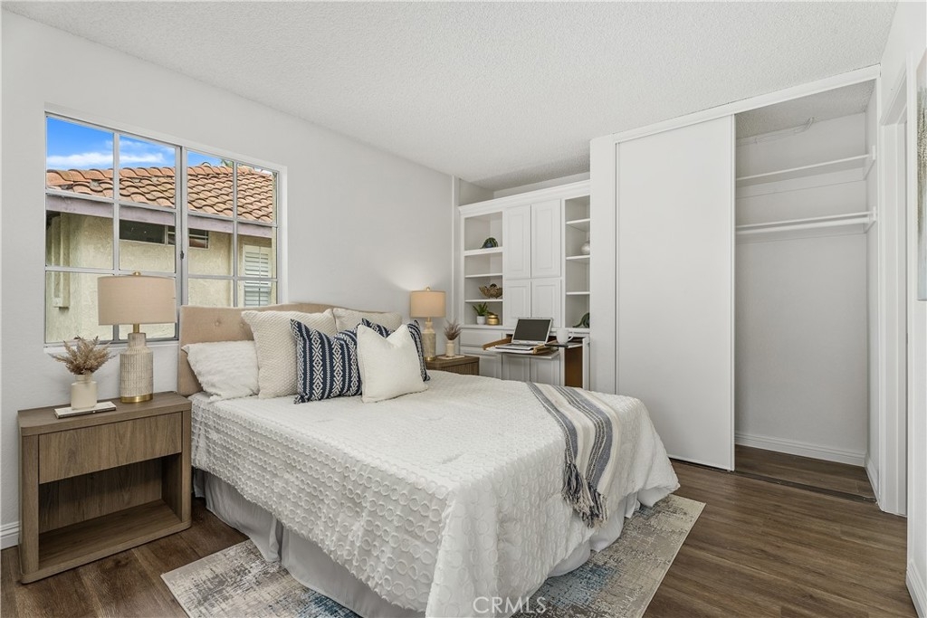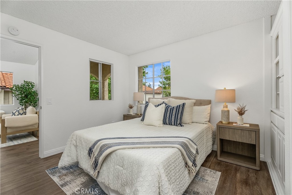 YOU MADE IT TO LAKE LIFE! Welcome to your fresh, fun pied-à-terre in MV where home feels like vacation. Lake membership lets you balance work & play! Enjoy concerts & boating as part of your everyday. Perfect for a work-from-home setup, hosting guests, or living life on your terms. A blend of Privacy & Possibility as this thoughtfully designed bright & entertainer-ready home offers two primary ensuite bedrooms & two full baths, giving the flexibility & privacy whether living solo, sharing with a roommate, or enjoying multi-generational living. Want to watch over your car like a hawk? Set on an upstairs corner location, you can admire it from your perch while enjoying an open view. The first suite includes custom office cabinetry, ideal for a home office, study area, or creative retreat. Above both suites is a giant attic to store all your files, holiday decorations & childhood treasures. Hate long walks from your car or the laundry? You won’t have to. Your two parking spaces, including a covered carport with storage, are just steps from your front door, & your new home includes a washer & dryer, making daily life stress free. This open floor plan features vaulted ceilings, luxury engineered flooring & a spacious deck perfect for morning coffee, happy hour sunsets & weekend gatherings. Freshly painted, & includes a newer stove for romantic dinners at home & then natural light keeps the morning vibe relaxed. Enjoy sparkling pools, a clubhouse, and water & trash included in your HOA fees, plus membership to the lake, your all-access pass to beach & swimming, boating & unforgettable summer concerts. The entire Las Palmas community was re-piped in 2019 for added peace of mind. Into sports or outdoor fun? High Park nearby offers sand volleyball, two baseball diamonds, a children’s playground, & open fields for weekend fun. Love hiking or biking? Whiting Ranch is also nearby with scenic trails for all levels. Close to It All! Love weekend adventures? You’re just minutes from Irvine Spectrum, Laguna Beach, Newport Beach & surf spots in San Clemente, plus whale watching in Dana Point. Craving nightlife? LA & San Diego scenes are within reach. And when you’re ready for a quick getaway, Amtrak, JSX & SNA airports are close by, making Vegas Baby an easy weekend reality. This isn’t just a condo, it’s your fun, flexible escape in the heart of MV. Whether you’re working, relaxing, or entertaining, this is where life gets lighter, brighter & a whole lot more fun.