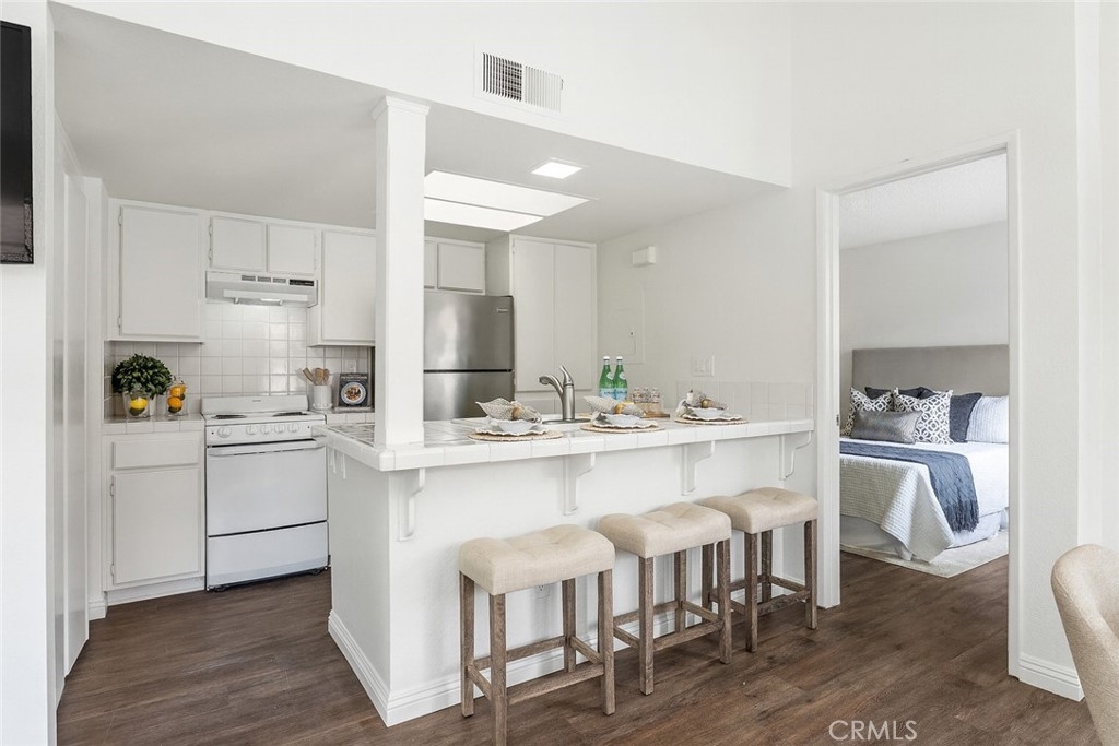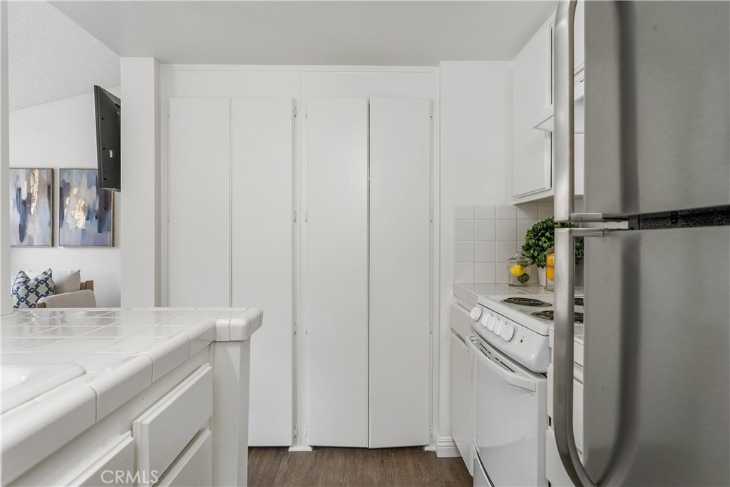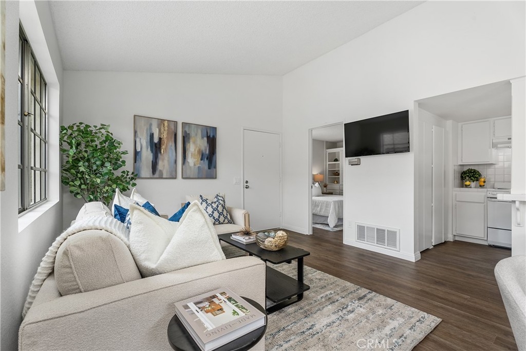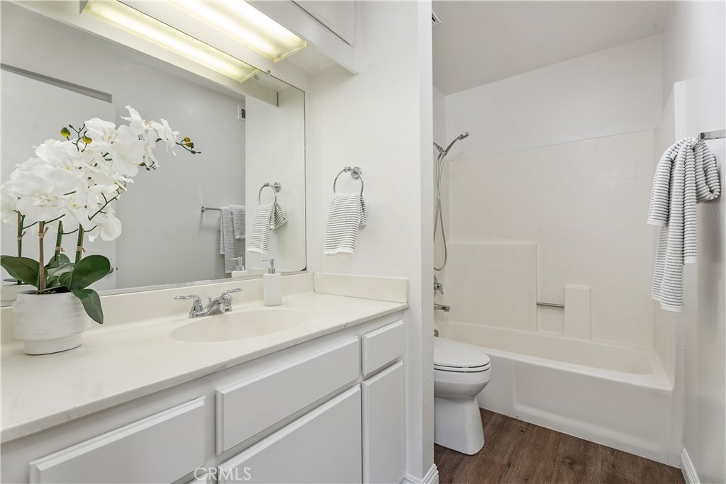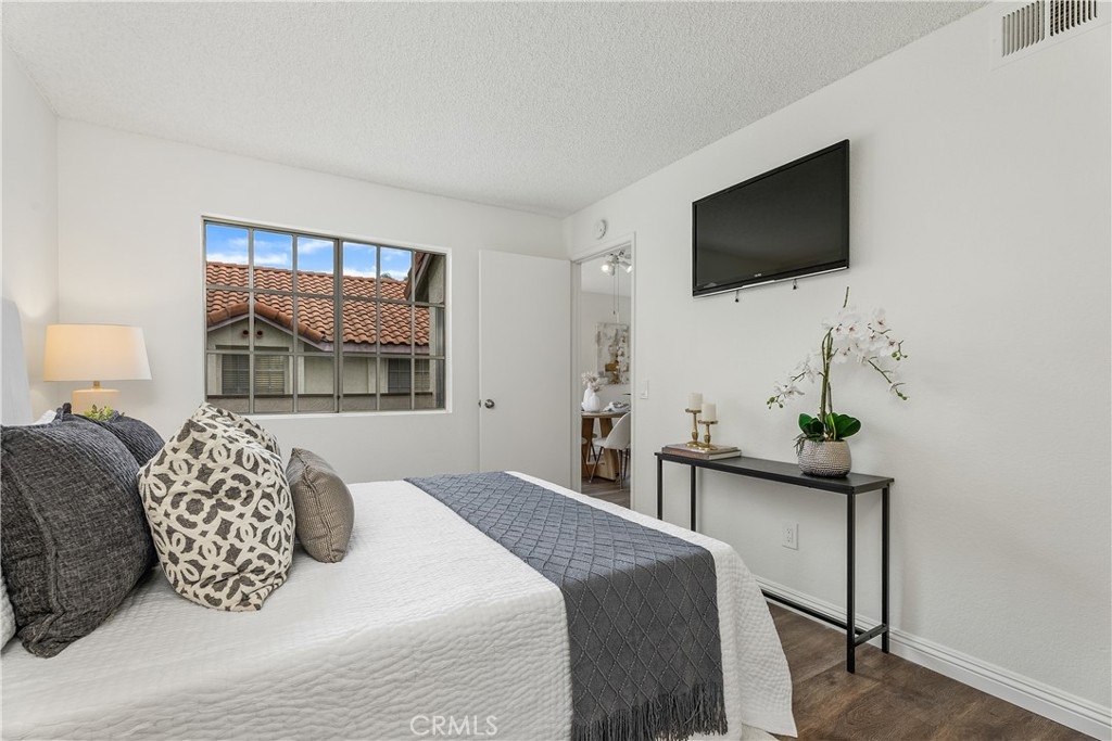 YOU MADE IT TO LAKE LIFE! Welcome to your fresh, fun pied-à-terre in MV where home feels like vacation. Lake membership lets you balance work & play! Enjoy concerts & boating as part of your everyday. Perfect for a work-from-home setup, hosting guests, or living life on your terms. A blend of Privacy & Possibility as this thoughtfully designed bright & entertainer-ready home offers two primary ensuite bedrooms & two full baths, giving the flexibility & privacy whether living solo, sharing with a roommate, or enjoying multi-generational living. Want to watch over your car like a hawk? Set on an upstairs corner location, you can admire it from your perch while enjoying an open view. The first suite includes custom office cabinetry, ideal for a home office, study area, or creative retreat. Above both suites is a giant attic to store all your files, holiday decorations & childhood treasures. Hate long walks from your car or the laundry? You won’t have to. Your two parking spaces, including a covered carport with storage, are just steps from your front door, & your new home includes a washer & dryer, making daily life stress free. This open floor plan features vaulted ceilings, luxury engineered flooring & a spacious deck perfect for morning coffee, happy hour sunsets & weekend gatherings. Freshly painted, & includes a newer stove for romantic dinners at home & then natural light keeps the morning vibe relaxed. Enjoy sparkling pools, a clubhouse, and water & trash included in your HOA fees, plus membership to the lake, your all-access pass to beach & swimming, boating & unforgettable summer concerts. The entire Las Palmas community was re-piped in 2019 for added peace of mind. Into sports or outdoor fun? High Park nearby offers sand volleyball, two baseball diamonds, a children’s playground, & open fields for weekend fun. Love hiking or biking? Whiting Ranch is also nearby with scenic trails for all levels. Close to It All! Love weekend adventures? You’re just minutes from Irvine Spectrum, Laguna Beach, Newport Beach & surf spots in San Clemente, plus whale watching in Dana Point. Craving nightlife? LA & San Diego scenes are within reach. And when you’re ready for a quick getaway, Amtrak, JSX & SNA airports are close by, making Vegas Baby an easy weekend reality. This isn’t just a condo, it’s your fun, flexible escape in the heart of MV. Whether you’re working, relaxing, or entertaining, this is where life gets lighter, brighter & a whole lot more fun.