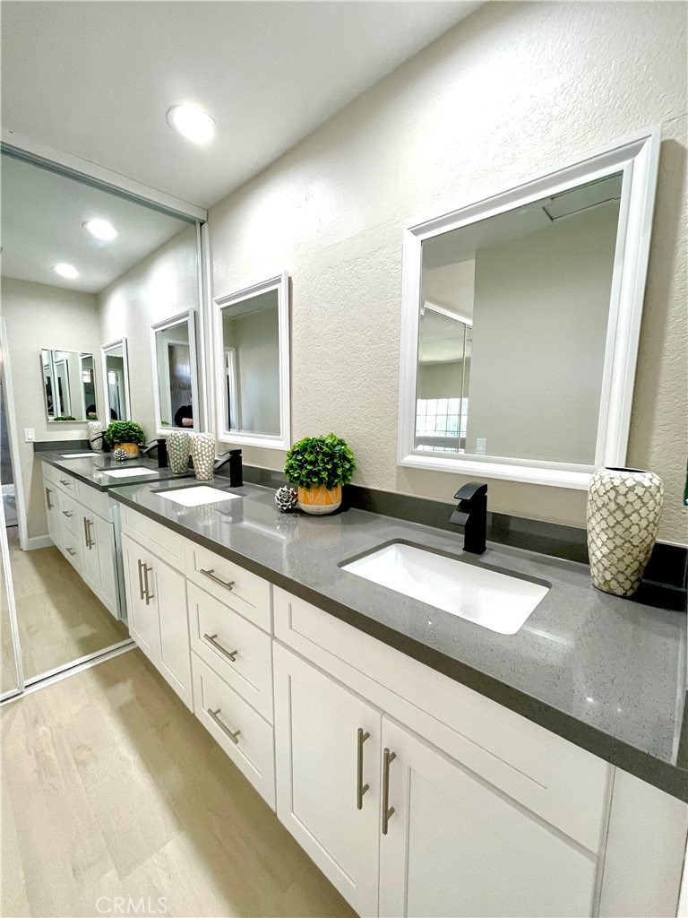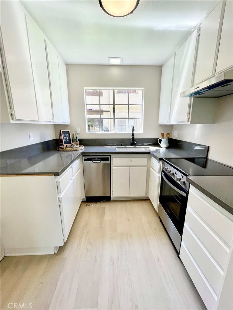 NEW! NEW! NEW! Remodel just completed. Townhouse style condominium, nobody above you. The following items are new: quartz counter tops, laminate vinyl flooring, dishwasher, range, faucets, light fixtures, carpet, new paint inside, etc. etc. Remodeled bathrooms. Shows like a model.