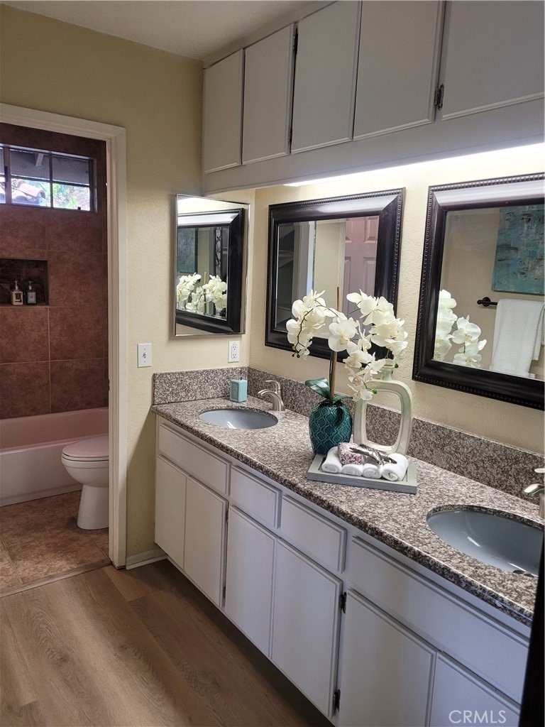 Back on market- fell out of escrow. Here is your opportunity to own this remodeled prime end unit location. No one above or below you. Upstairs has large master bedroom with two sinks and two mirrored wardrobe closets with built-ins. Downstairs has guest bathroom, inside washer and dryer. Electric ez clean stove and granite counter tops. Family room has high ceilings, wall wired for flat screen tv. Waterproof laminate wood like floors throughout. Enclosed private patio backs to peaceful greenbelt area, perfect for a small dog, Assigned covered parking with storage. Close walk to association pool and spa. Enjoy all the benefits of Mission Viejo Lake- Fishing, boating, summer concerts eand more.
