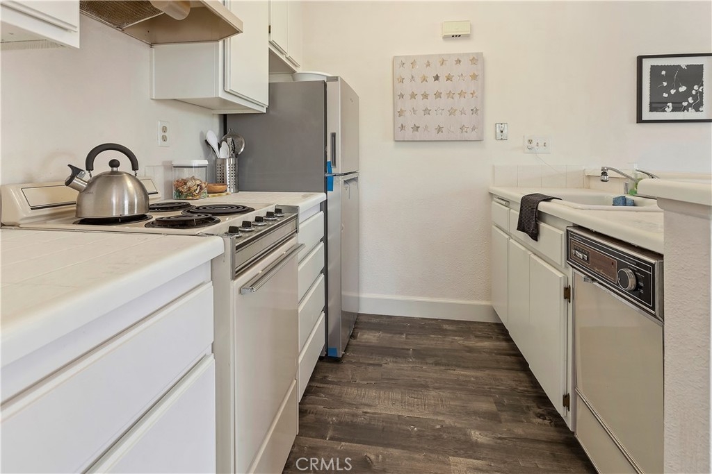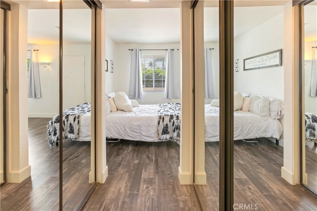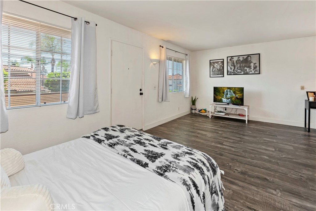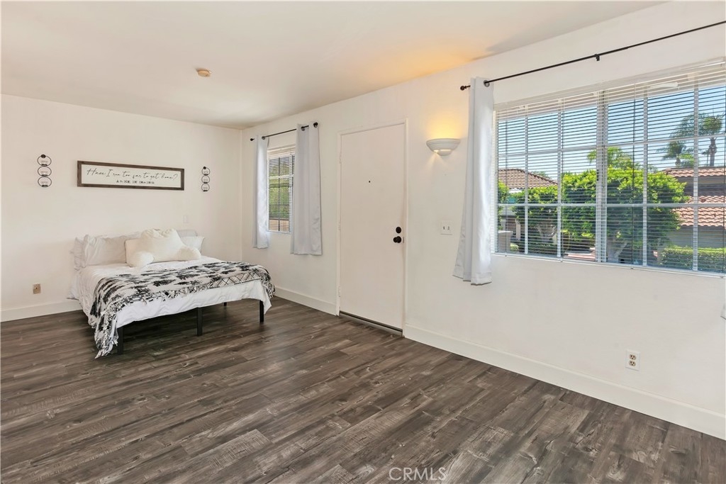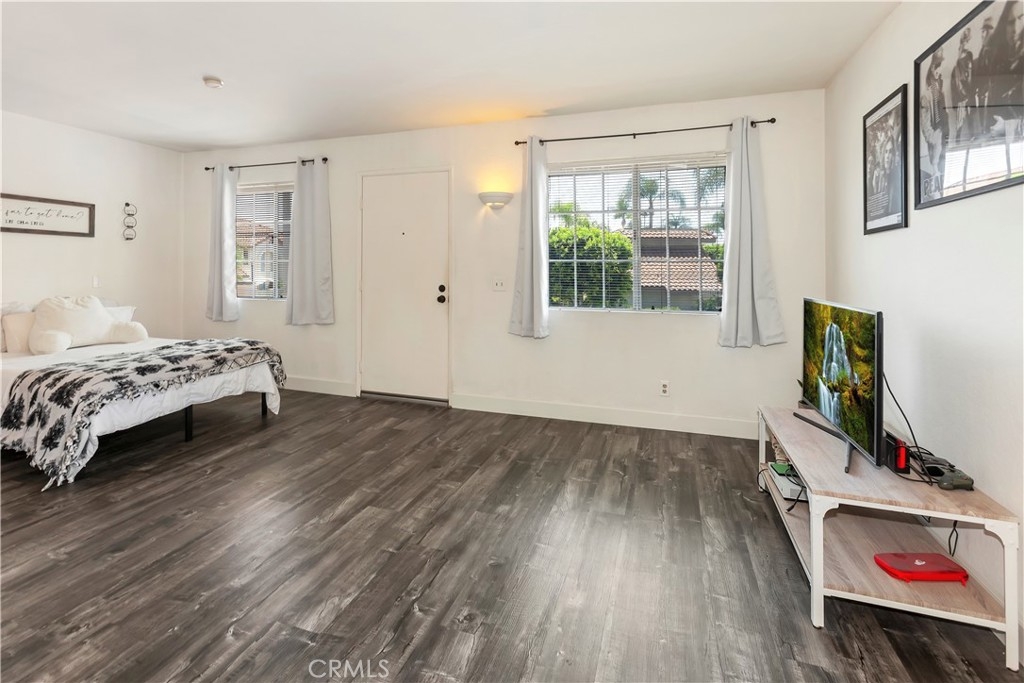 Charming studio with 1 bath available in Mission Viejo's La Palmas Community. This studio unit is elevated onto the second story with no neighbors underneath. It provides ample living space for all lifestyles and activities. Open kitchen to the main living area featuring stove/oven combo and dishwasher. Kitchen cabinets extend all along the kitchen's back wall to provide plenty of storage options. Laundry is located near the kitchen with both washer and dryer hookups. The living room area is immersed with light provided by the adjacent large windows. Perfectly sized area for bed placement or space spaving murphy bed. Two large sliding door closets with mirrors lead you to a full tub bathroom. Spacious 1 car garage underneath this home. This corner unit will surprise you with its light-filled interior, matching flooring throughout, and proximity to Lake Mission Viejo. As part of HOA, you have access to 2 pools, a spa, clubhouse. This sought-out location is only a short distance to shopping, dining, community parks, and access to the 5 and 241 freeways. HOA provides membership to Lake Mission Viejo that allows its residents access to its private lake beach area and enjoy swimming, summer concerts, paddleboard, and boat rental. What's not to love, open house coming soon.