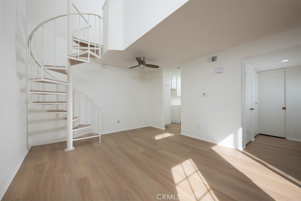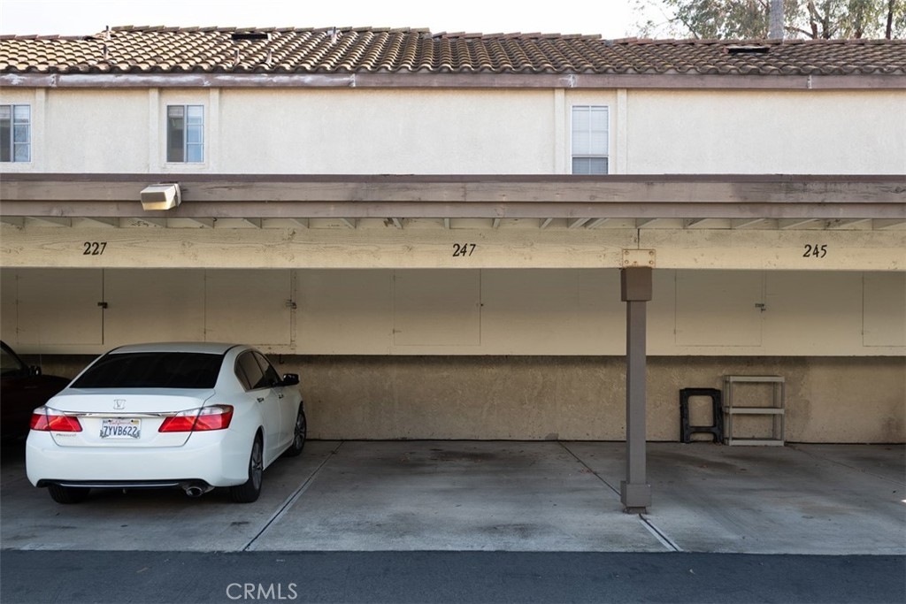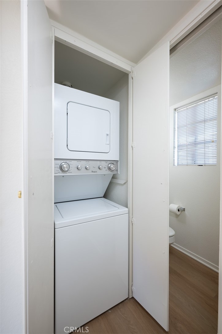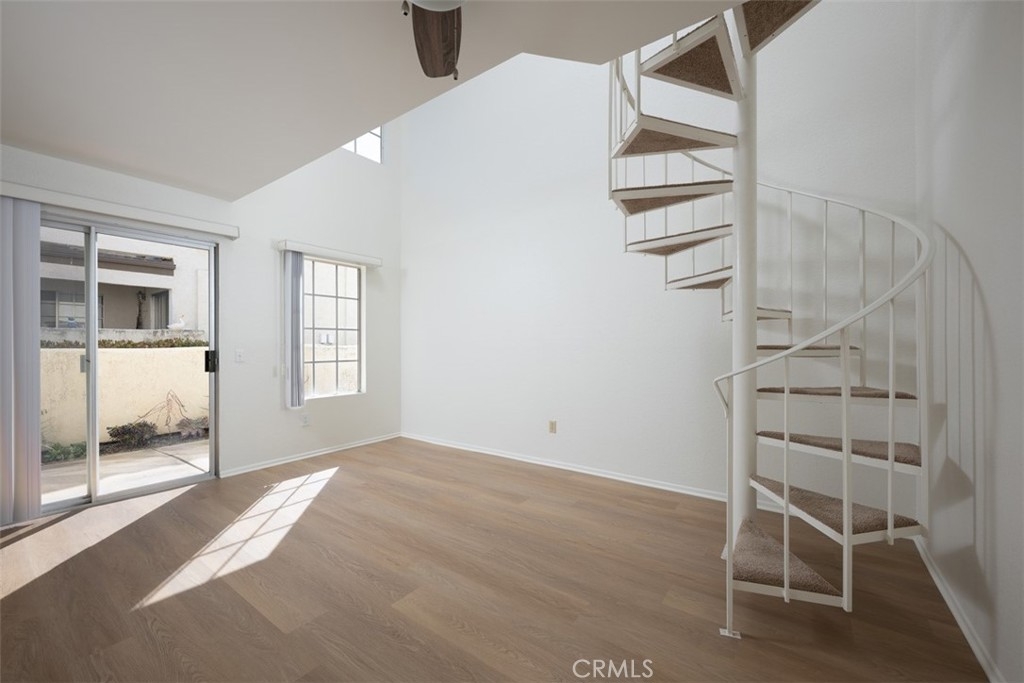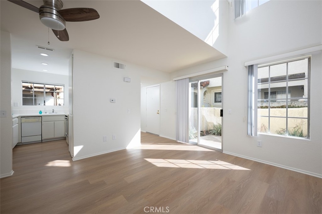 Welcome to this charming, light & bright end-unit condo with no neighbors above or below! Step inside to discover fresh scraped ceilings, recessed lighting, and an inviting, open atmosphere. The kitchen features newly painted cabinets inside and out, while stylish wood laminate flooring downstairs adds a modern touch and gleams in the natural sunlight. Upstairs, the spacious loft-style bedroom feels open and airy, complete with light carpeting, large windows, and an expansive mirrored closet. The bathroom area offers dual sinks, ample counter space, and convenient linen storage, with a separate shower and toilet area featuring two windows for natural light and ventilation. A half bath downstairs adds extra convenience, and the in-unit stackable laundry is tucked neatly into a closet. Step outside to your private patio - a perfect retreat with lovely low maintenance greenery. Just a short stroll away, you'll find the Las Palmas community pool, spa, and clubhouse. Plus, enjoy the convenience of an assigned covered carport with extra storage. HOA dues include water, sewer, trash, exterior maintenance, lush landscaping, and access to community amenities. Additionally, this condo includes membership to Lake Mission Viejo, where you can enjoy exclusive access to the Lake’s beaches, picnic areas, water sports, swimming, playgrounds, and year-round community events. Centrally located in South Orange County, this home offers easy access to freeways, top-rated schools, and premier shopping, dining, and entertainment. This gem won’t last long; don’t miss your chance to call it home!