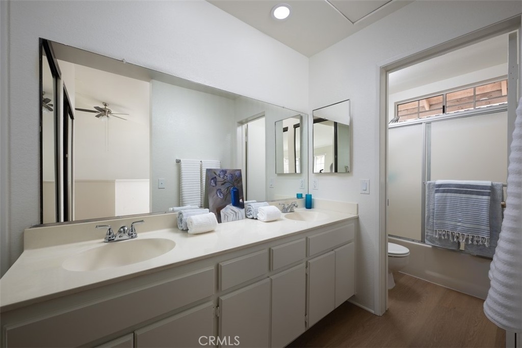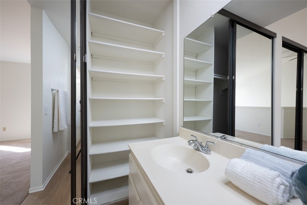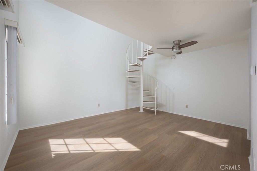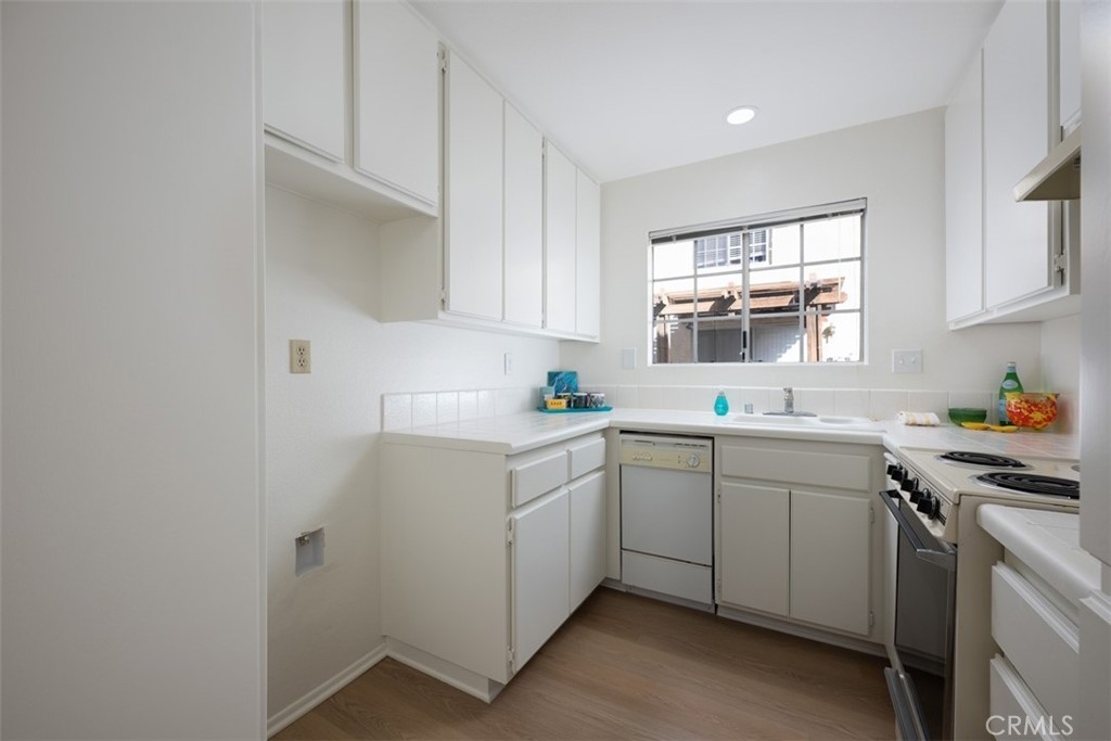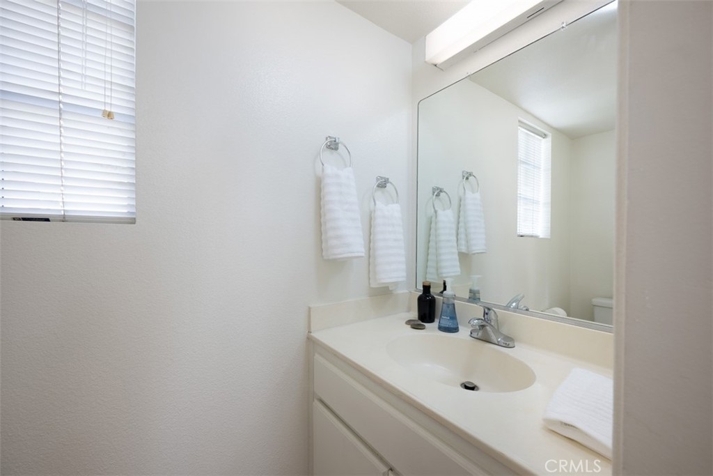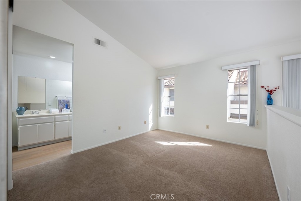 Welcome to this charming, light & bright end-unit condo with no neighbors above or below! Step inside to discover fresh scraped ceilings, recessed lighting, and an inviting, open atmosphere. The kitchen features newly painted cabinets inside and out, while stylish wood laminate flooring downstairs adds a modern touch and gleams in the natural sunlight. Upstairs, the spacious loft-style bedroom feels open and airy, complete with light carpeting, large windows, and an expansive mirrored closet. The bathroom area offers dual sinks, ample counter space, and convenient linen storage, with a separate shower and toilet area featuring two windows for natural light and ventilation. A half bath downstairs adds extra convenience, and the in-unit stackable laundry is tucked neatly into a closet. Step outside to your private patio - a perfect retreat with lovely low maintenance greenery. Just a short stroll away, you'll find the Las Palmas community pool, spa, and clubhouse. Plus, enjoy the convenience of an assigned covered carport with extra storage. HOA dues include water, sewer, trash, exterior maintenance, lush landscaping, and access to community amenities. Additionally, this condo includes membership to Lake Mission Viejo, where you can enjoy exclusive access to the Lake’s beaches, picnic areas, water sports, swimming, playgrounds, and year-round community events. Centrally located in South Orange County, this home offers easy access to freeways, top-rated schools, and premier shopping, dining, and entertainment. This gem won’t last long; don’t miss your chance to call it home!