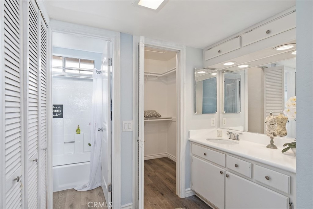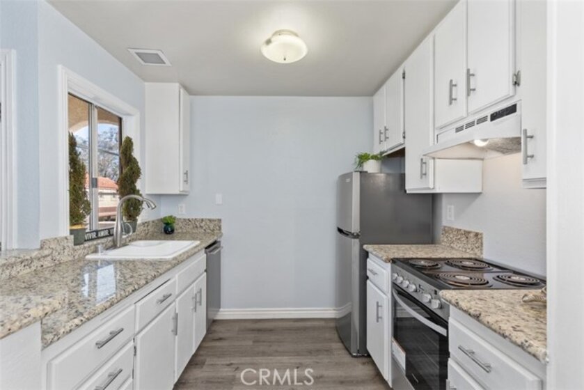 Fabulous upstairs end unit with beautiful hills views. This 1 bedroom, 1 bath unit is spacious and inviting. Kitchen has granite counters, new appliances and opens to the breakfast nook. The living room / family room offers plenty of natural light and vaulted ceilings. The bedroom has an abundance of light, and features a walk in closet plus a full bathroom and separate vanity area. The laundry closet is conveniently located indoors and features new stacked units. Newly painted throughout. Enjoy the outdoors in the patio with views of the hills. The home had previously been refitted with PEX plumbing. As an owner you also have membership to Lake Mission Viejo. The Las Palmas community features 2 pools and a spa. Unit has one assigned carport space with a storage closet. Virtual tour: https://tours.previewfirst.com/ml/119733