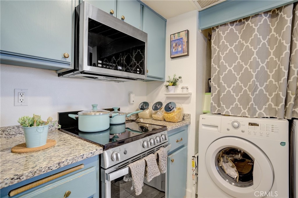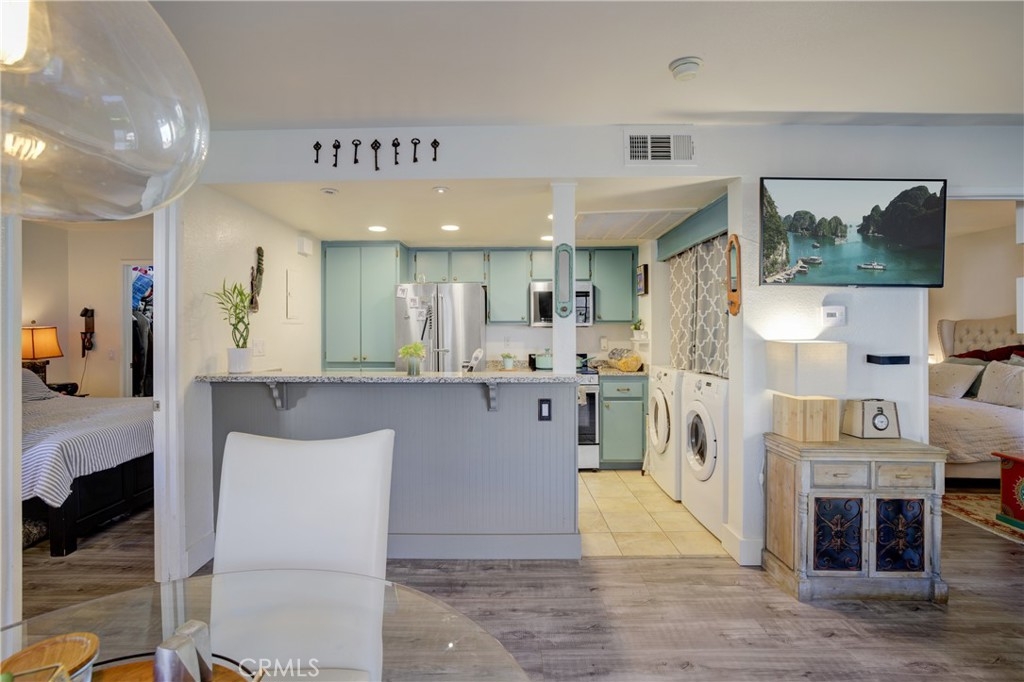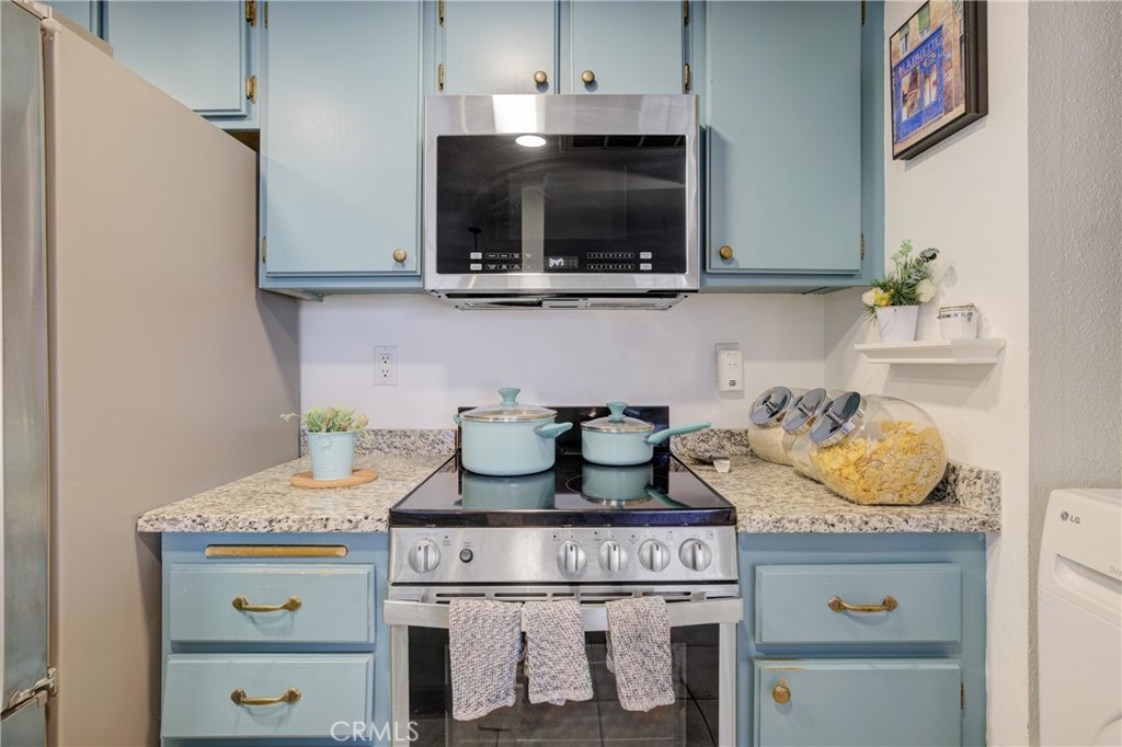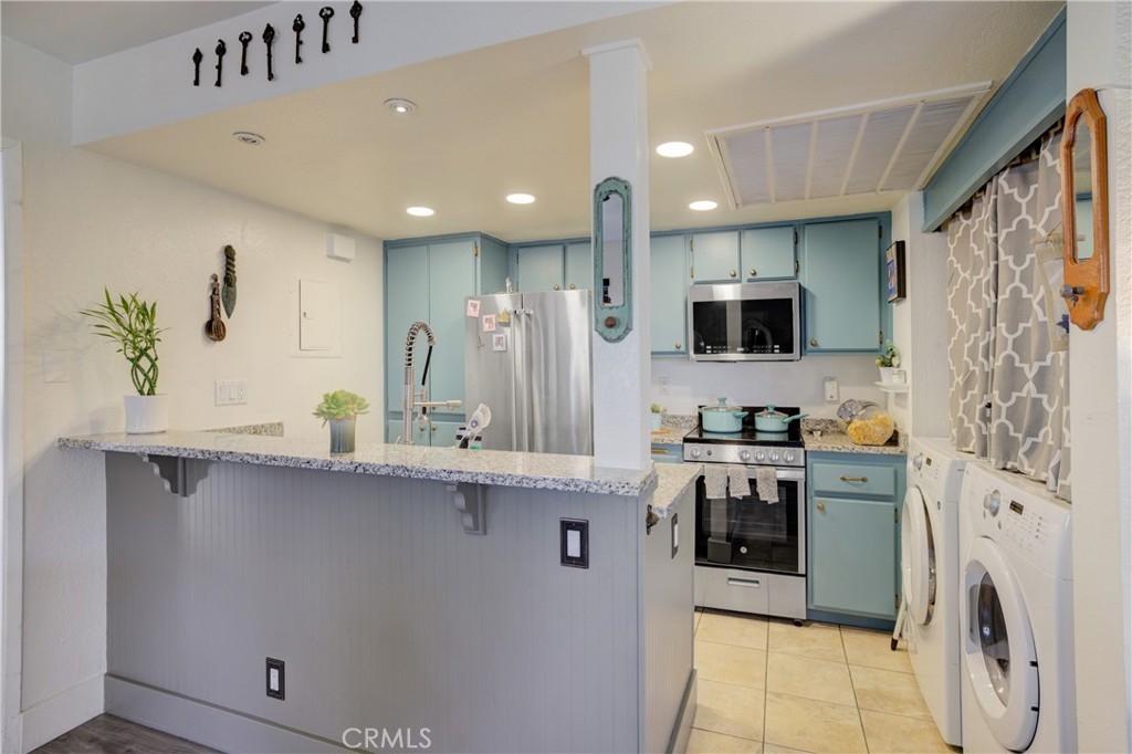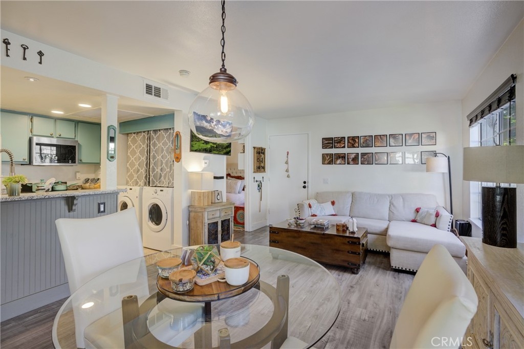 Welcome to this meticulously maintained 2-bedroom, 2 bathroom, single level oasis, nestled in the coveted Las Palmas neighborhood of Mission Viejo. Upon crossing the threshold, prepare to be captivated by the thoughtfully designed open floorplan that defines this home. The living room seamlessly flows into the dining area, which then leads to the heart of the home- a beautifully remodeled kitchen. Here, you’ll discover the elegance of granite countertops, illuminating LED lighting, and a convenient breakfast bar that beckons both budding chefs and casual diners alike. Step beyond the kitchen and into a spacious back patio, offering a serene retreat for moments of relaxation and alfresco dining. For your convenience, the laundry area has been thoughtfully upgraded to provide ample space for a full sized washer and dryer within the unit. This unit has scraped ceilings and the flooring is newer high quality Pergo XP lending an air of modern refinement. As for the bathrooms, they too have received tasteful upgrades adding a touch of luxury to your daily routine. Additional features of this home include one assigned parking space and an additional carport space, granting you ample room for your vehicles. Residents here enjoy access to the coveted Lake Mission Viejo with no Mello Roos obligations to worry about. The Las Palmas community offers resort like amenities, boasting two pools, two Jacuzzis, and a poolside facility available for your special events and gatherings conveniently you’re just a leisure stroll away from grocery stores, and a host of shops and restaurants as well as Alicia Park for outdoor activities and picnics. This home is also situated within the esteemed Saddleback Valley Unified School District. Commuters will appreciate the property’s proximity to the 5/405 freeway a mere 5 minutes away, and then the Irvine Spectrum and Shops at Mission Viejo Mall are a short drive away. Hurry this is true Gem in a prime location. Don’t miss this opportunity to call this splendid residence your own.