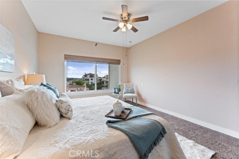 Located in the highly desirable guard gated community of Mallorca & enjoying a gorgeous view of the Mission Viejo Lake, this 2 bedroom 2 bathroom, upper level home, is truly special. Vaulted ceilings & plenty of natural light shine throughout the open floor plan. The home has a large living room centered around the fireplace & has doors leading out to the large wrap around patio where you can enjoy spectacular views of the lake, mountains, sunsets & city lights. The upgraded kitchen features white cabinets, a black granite countertop with sparkles & stainless steel appliances for the perfect contrast. The large master bedroom enjoys gorgeous views of the lake as well. Enjoy the community's numerous offerings such as private beach, boat dock, pools & spas. Enjoy resort living at its finest!!