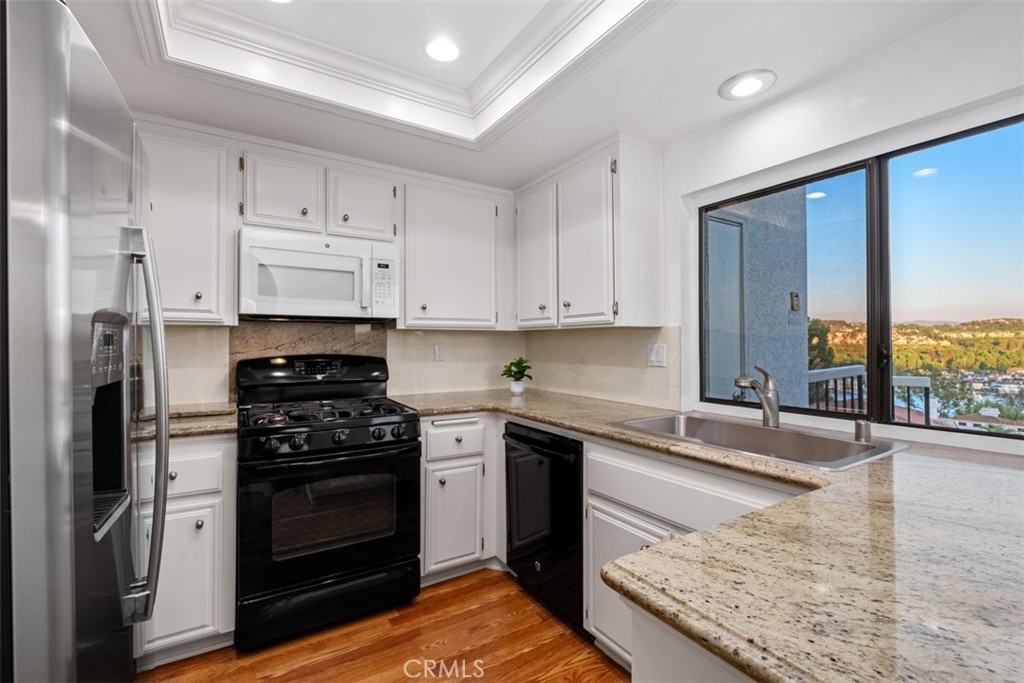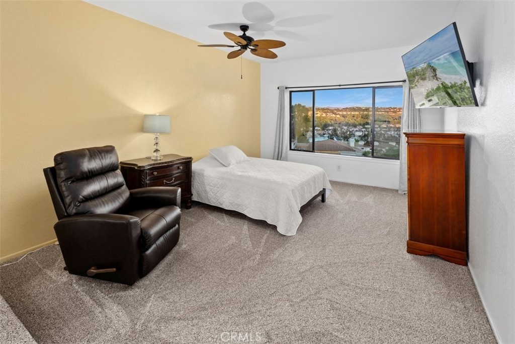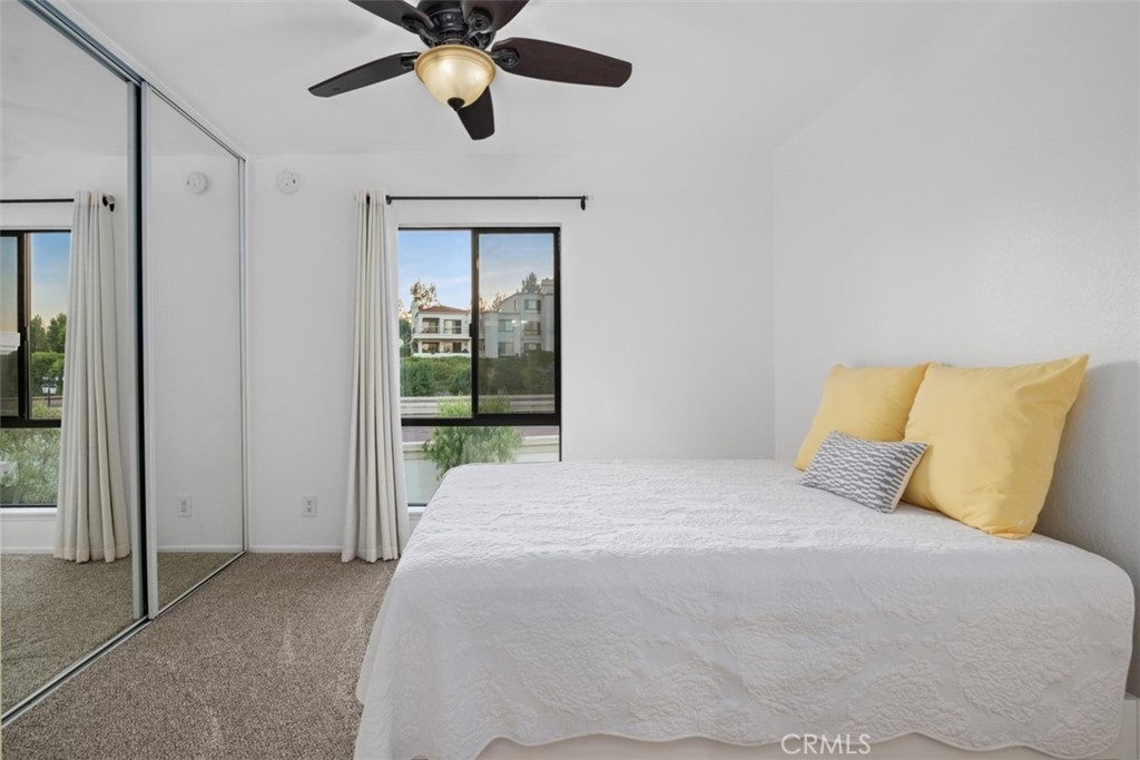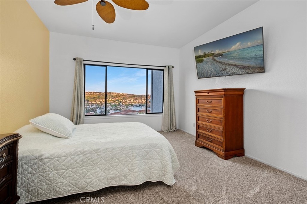 With majestic VIEWS of Lake Mission Viejo and the Saddleback Mountains, this rare upper-level penthouse offers one of the most breathtaking views in the entire community. Nearly every room—living, dining, primary bedroom, and kitchen—showcases the views. This 2-bedroom, 2-bath home is ideal for a buyer looking for a solid floor plan they can personalize and make their own. The bones are great and while you can change almost anything inside, the views will always remain. West-facing and filled with natural light, the home welcomes you with a calm, breezy vibe from the moment you walk in. The spacious balcony is covered for year-round enjoyment and features two retractable awnings, giving you the flexibility of full sun or relaxing in the shade. Whether you're reading during a rainy day or hosting friends, this space delivers. Next summer, you’ll have a front-row seat to the SPECTACULAR firework show from your own balcony. You'll also hear the summer concerts as you BBQ and entertain. Inside, the living room features newer carpet (installed less than two weeks ago) a cozy gas fireplace and a newer large sliding glass door to the balcony. Another double-pane sliding glass door in the dining room making indoor-outdoor entertaining easy. The kitchen is clean and functional, with a large window framing that incredible view. The primary bedroom is generously sized and also faces the lake—wake up each day to a view that never gets old. The second bedroom is set toward the front of the home and includes a ceiling fan and closet. Ideal for a home office or yoga room. The hallway offers plenty of storage for your linens and a full-size interior laundry area adds convenience, and your 2-car detached garage is just steps away. Additional upgrades include mostly newer double-pane windows and a full PEX re-pipe for added peace of mind. This is a gated and monitored community with 24/7 security and resort-style amenities: two pools and spas (one near the home), private beaches, swimming areas, BBQs, and picnic spots. As a Lake Mission Viejo member, you’ll also enjoy boating, fishing, summer concerts, and seasonal events. You’re close to Plaza Del Lago, with its shops, restaurants, and lakefront patios—ideal for wine nights or casual dinners. With award-winning schools, parks, dog parks, and hospitals all nearby. Penthouses in Mallorca are a rare find—fewer than five exist in the entire community. Come see it, fall in love, and make it your own.