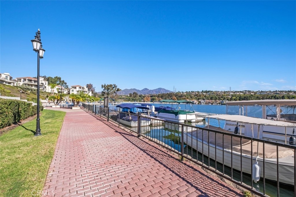 Model perfect Mallorca condo with incredible panoramic views of Lake Mission Viejo. Enjoy one level living, with only two steps inside the unit and ground floor entry. This residence has been expertly remodeled and thoughtfully designed and almost everything is new: new luxury vinyl flooring and carpet throughout, new dual pane and energy efficient windows and doors, remodeled kitchen with solid surface counters and designer backsplash, new lighting, new interior paint, new interior doors, custom fireplace surround, new door hardware, remodeled bathrooms with an all-new primary bathroom shower and vanity, and the list goes on! Bright open floor plan with primary bedroom and large secondary bedroom. Plenty of room for entertaining inside and outside on the oversized balcony to enjoy forever views of the lake and beautiful sunsets. Large 2 car garage and guest parking nearby, premier lot/location and highly desirable southwest orientation. Living in Mallorca means enjoying an array of amenities: a private beach with restrooms, picnic tables, BBQs, two swimming pools with spas and restrooms, 72 boat docks, and paddleboard racks. Plus, lake membership opens the door to boat rentals, exclusive access to North and East Beach facilities, summer sunset concerts, and spectacular lake fireworks. Don't miss out if you are looking for move-in ready and one of the best views in the community.