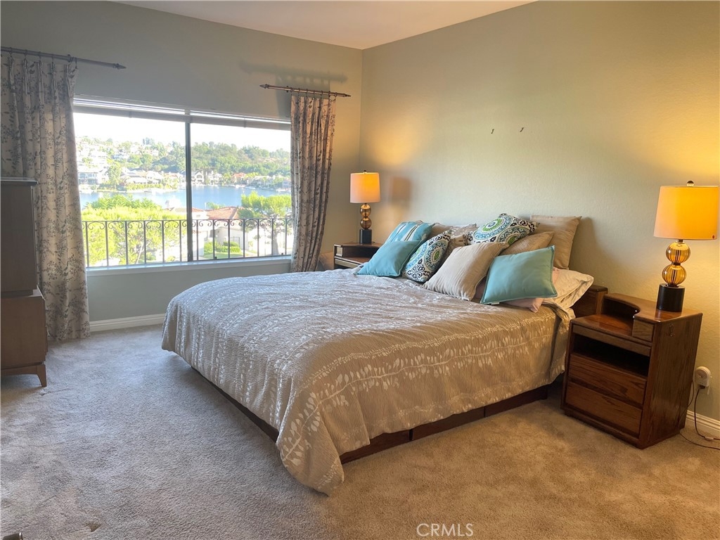 Welcome to this highly desired townhouse one street off the lake front with panoramic views of Lake Mission Viejo, North Beach, East Beach and Saddleback Mountain. The floor plan has 3 bedrooms, 3 bathrooms, no one else living above or below, a 2 car direct access garage and the LR, DR, Kitchen, Nook, Powder Room, Master Bedroom and Master Bath all at the entry level with no stairs to contend with. Two large bedrooms and a bathroom are located downstairs. This particular unit has a double sized front courtyard, textured ceilings, granite counters in the kitchen and 10 celestial windows in the dining area allowing morning light to pour from the East, all day light from the South and afternoon light from the West. Tile flooring covers the entry, the the Kitchen, the Nook and the Dining Room. The inviting living room allows access through a vinyl sliding door to a rear, view balcony and has the builder installed fireplace positioned in a corner rather than in the middle of the room as is the case on other streets in the complex. The bedrooms, stairs and landing are carpeted and the 3 bath are tiled. Master bath features include double sinks, a separate shower and tub, a solar tube, oil rubbed bronze colored features and 4 mirrored closet doors. Enjoy living in the prestigious, gate guarded community of Mallorca with 2 pool/spa areas, it's own private beach with picnic tables, bar-b-q's, bathrooms and a cabana, 72 in water boat docks with water/electricity, a fishing dock, a loading dock and near water storage racks for paddleboards. This one should not last long.