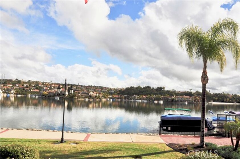 Rare Opportunity….Enjoy the ambiance of an unobstructed view with lakefront living at its finest! A special location on a cul-de-sac with extra guest parking just steps from lake access, private boat docks and the lower pool/spa area. One of the few homes without docks directly in front of it, your panoramic view includes an end-to-end lake experience, East Beach, North Beach, the Oak Preserve, sunrises and majestic Saddleback Mountain views. Perpetual light pours in from the celestial windows facing east (AM sun), South (midday sun) and West (PM sun). This “upside down” 2 story unit has no one living above or below. On street level is LV, DR, MBR, MB, Kitchen, Nook, and powder room. Downstairs offers a very spacious guest room, third guestroom/office, private patio and full bath. Perfect privacy for visitors! The Mallorca Community offers a 24/7 live gate attendant and private beach.