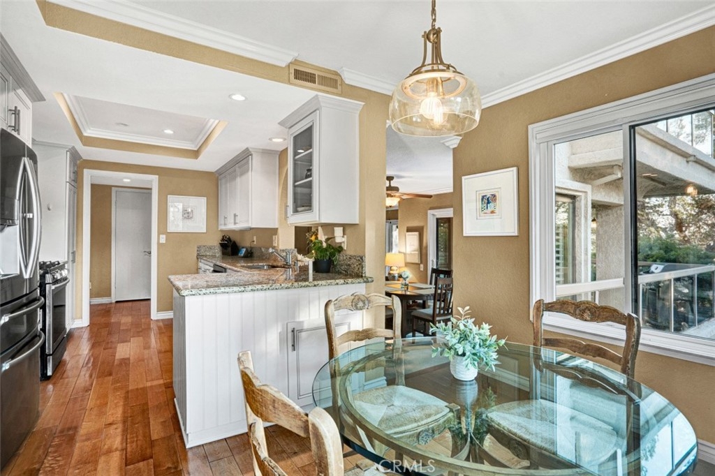 Live the Good Life on Lake Mission Viejo with this Beautiful Mallorca Home! This 2 bedroom and 2 bathroom home with amazing views of the lake will make you feel like you are living in a resort everyday! The home boasts endless upgrades including a remodeled kitchen, remodeled bathrooms, dual-paned windows and sliders, Plantation shutters, remodeled stone fireplace, built-ins, crown molding, beautiful flooring and more! The entry is highly desirable with only 3 steps up into the front door that opens to beautiful views to the lake. The gorgeous remodeled kitchen is light and bright and includes granite counter tops, stainless steel appliances, elegant wood cabinets with glass doors, a coffee station and a kitchen nook area with perfect views. The kitchen opens to the living room and family room with a cozy fireplace and two large sliders that open to the spacious balcony perfect for relaxing after a busy day. The views from the balcony will make you never want to leave! The primary bedroom is extra large with a gorgeous view of the lake, a spacious primary bathroom and a huge closet area. The primary bathroom includes dual sinks, stone counter tops, wood cabinets and a walk-in stone shower. The secondary bedroom is currently used as an office but includes a Murphy bed and storage great for transitioning to a bedroom when needed. The secondary bath is also upgraded with wood cabinets, stone counter top and a remodeled bath/shower combo. This home also includes an inside laundry closet with storage and a two car detached garage very close to the home. The resort-style amenities of the Mallorcas includes a 24 hour guard at the front gate, two pools, two spas, beautifully maintained landscaping, walkways all around the community and a private beach. The private beach is for Mallorca residents only and includes covered picnic areas, bbqs, racks for paddle boards/kayaks, community boat dock and limited private boat slips if you wish to have your own boat at the lake. Also included is a membership to the wonderful Lake Mission Viejo where you will enjoy two beaches, clubhouse, concerts, boat rentals, many other water rentals, fishing, sand volleyball, playground and swimming. Very close to wonderful lakefront restaurants, shops, gyms and more! You will definitely be Living the Good Life on Lake Mission Viejo! (Click onto the 360 icon under the map for the amazing drone video)