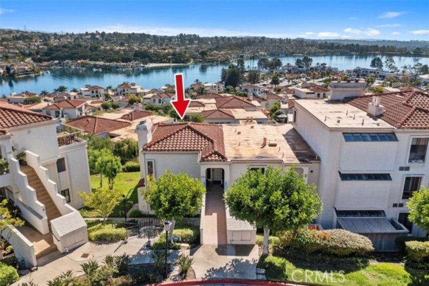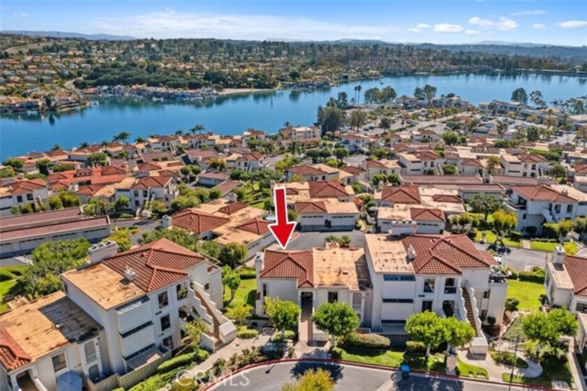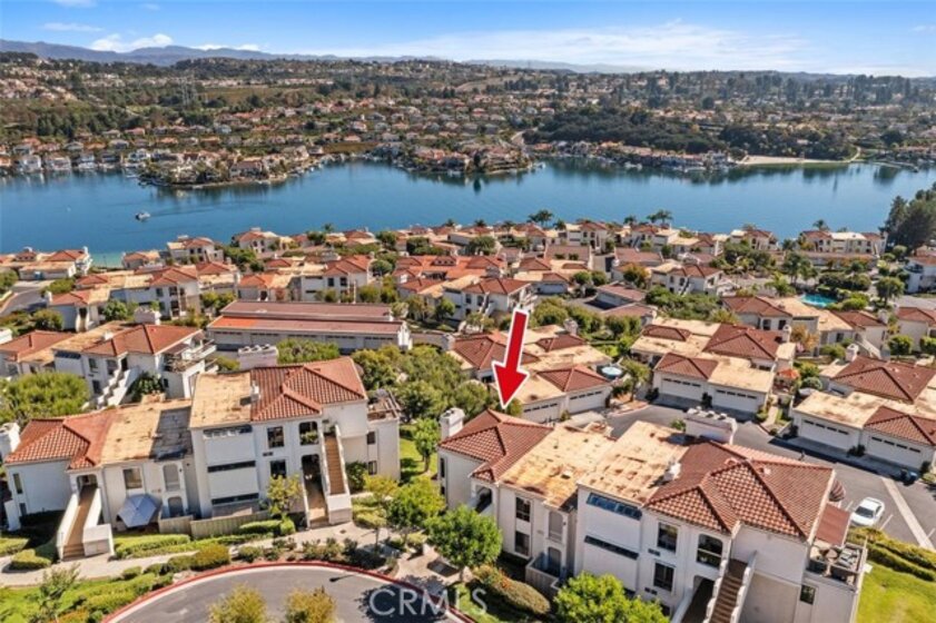 Stunning Upper-Level End Unit with Panoramic Lake Mission Viejo Views Located in the Prestigious Guard-Gated Mallorca Community Welcome to this beautifully appointed 2-bedroom, 2-bathroom upper-level end unit, ideally situated on a quiet cul-de-sac within the exclusive Mallorca community at Lake Mission Viejo. Enjoy exceptional privacy, comfort, and sweeping views of the lake, surrounding hills, rooftops, and city lights. The light- and views-filled interior features a step-down living room with expansive windows and direct access to a wraparound balcony—perfect for morning coffee or evening relaxation. The dining area and living room flow seamlessly to the balcony, creating an effortless indoor-outdoor lifestyle. The kitchen is equipped with a gas range, built-in microwave, dishwasher, trash compactor, and generous cabinetry. The primary suite offers stunning lake views, a spacious vanity with three mirrored closet doors, and an en-suite bathroom with dual sinks, a walk-in shower, and a private toilet area. A second full bathroom is conveniently located off the hallway. Additional highlights include a detached two-car garage, inside laundry area, recessed lighting, newer HVAC system, and an outdoor storage closet. Residents of Mallorca enjoy resort-style amenities including a private sandy beach and swimming area, two pools and spas, BBQ and picnic areas, lakeside promenade, walking trails, and community events. Experience the best of lakeside living with panoramic views from nearly every room—all within a tranquil, gated, and amenity-rich environment.