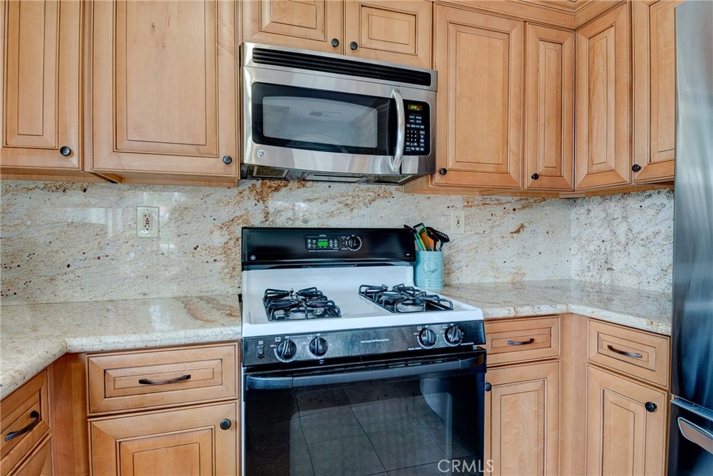 Spectacular Saddleback mountain views from the living room, dining room, kitchen and master bedroom surround this upper level home in desirable Mallorca Condominium Association and within steps to your private beach on Lake Mission Viejo. This upper level home, with only one set of stairs, has a western flair with an updated kitchen and bathroom with upscaled granite counter tops and tile flooring. New air conditioning and heating system, new water heater, upscaled laminate flooring in dining room, hallways and master bath area, designer faucets and new water efficient toilets, super quiet and efficient stainless steel dishwasher and refrigeration, and energy efficient dryer, all new in 2020-2021. This unit has an open concept living room with gas fireplace and dining room, opening up to a large deck, adding to the living space. The spacious master suite has an en suite bathroom and newly installed barn door closets, double sink and granite counter tops with separate toilet and shower room. Mallorca is a quiet, gated community with 24 hour security service at the gate, two gated pools and spa, and meticulous landscaping. Furnishings are negotiable.