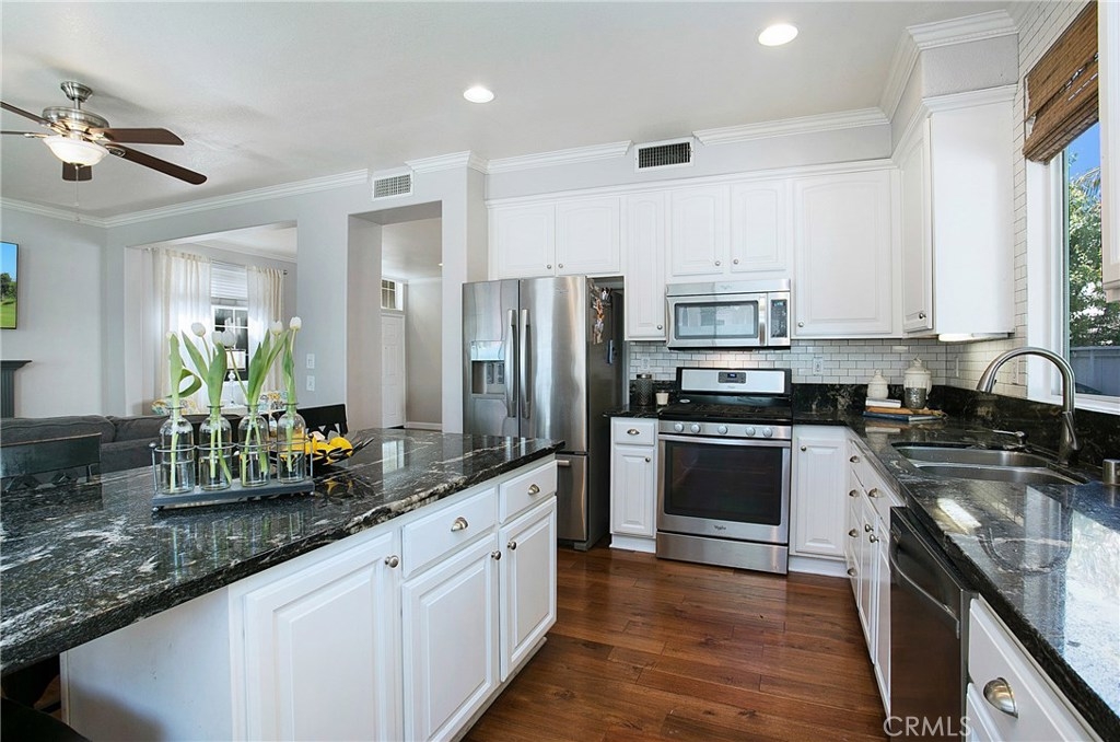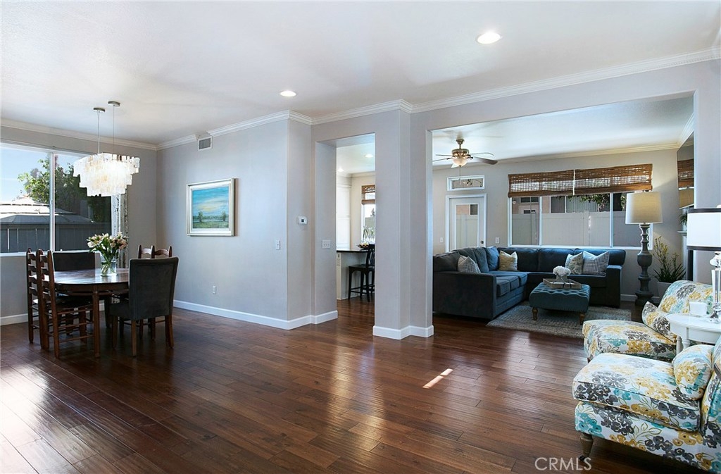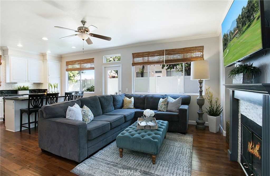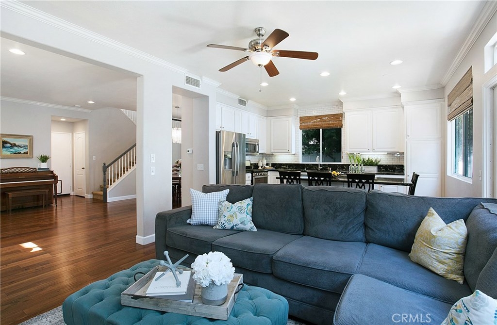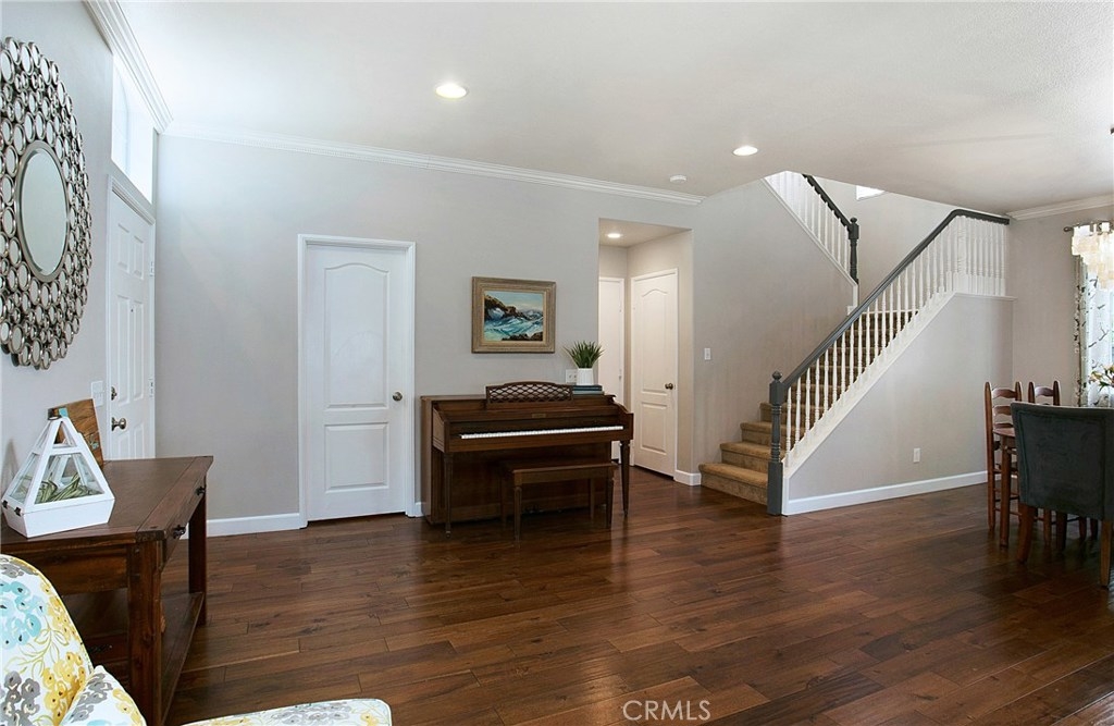 Welcome Home! Highly sought after floor plan in the gated Melrose community of detached homes. Located at the end of a cul-de-sac with one of the biggest lots in the tract. This home features 4 bedrooms PLUS bonus which could easily be a 5th, 2 ½ baths, open floor plan with numerous windows and natural light. The remodeled kitchen with large island seats 5+, granite counters, white subway tile back splash and stainless appliances is open to the family room with fireplace with mantel and built in. Other features include engineered hardwood floors, panel doors, large baseboards, tankless water heater, spacious master suite with private master bath, jetted tub and separate shower, dual vanities & walk in closet mirrored closet doors, remodeled main floor bath with quartz and glass tile back splash, recessed lighting, large upstairs laundry room. The large private wrap around yard includes huge side yards, artificial turf and 2 car attached garage with full driveway. Resort like community pool, spa, and tot lot. Lake Mission Viejo privileges with beaches, swimming, boating, fishing, paddle boarding, BBQ areas and concerts. Highly rated schools, great location close to freeway and shopping. Low HOA and Taxes. This home will not last!