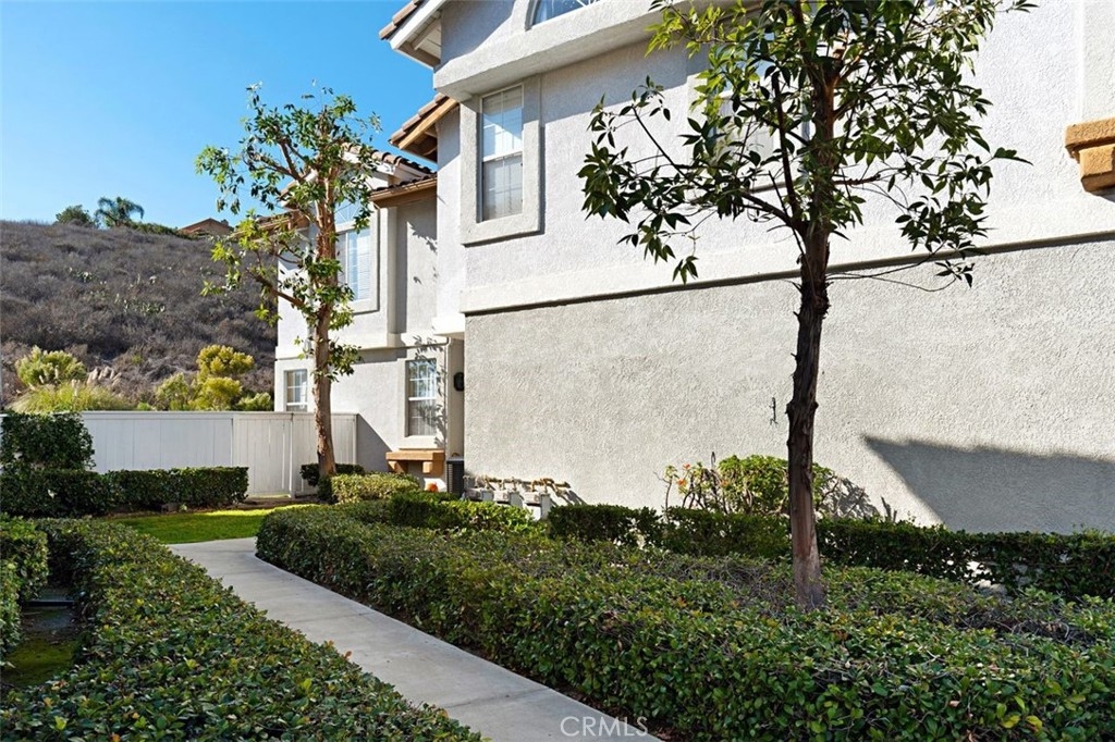 Don't Miss out on this very spacious End Unit 3 Bedroom 3 Bath Townhome with Rare Large Private Backyard and direct access 2 car garage located within the gated community of Mirasol. Features include an open living room with fireplace and an open dining room for a great room feel adjacent to family room and kitchen areas with sliding glass doors to outdoor patio area. Great for entertaining indoors and outdoors with private patio, covered area, Built-In BBQ, and plenty of private backyard area. Kitchen has a breakfast bar and dark granite counters. Downstairs half-bath and laundry in garage. All Bedrooms are upstairs. The Master Bedroom features vaulted ceilings with ceiling fan and closet, Master Bath En-Suite with walk-in closet En Suite, dual vanities, deep soaking tub and separate glass-enclosed shower. There are 2 spacious secondary bedrooms with ceiling fans that share a full bathroom with shower over tub with glass enclosure. Wood and slate downstairs, carpet upstairs. Gated Community with pool and spa amenities. Homeowners have access to membership at Mission Viejo Lake recreational area with beach amenities, boating, sailboats, fishing, summer concerts and so much more! Excellent schools. Close to shopping and freeways.