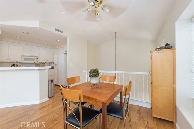 Welcome home to this wonderful, light and bright 2 Bedroom, 2 bath upper level home with high ceilings! From the entry into the upper level, there is a great flow of living space, from the nice kitchen that opens to the living and dining room for entertaining and family gatherings. The large living room has a cozy fireplace and plenty of room for seating. The home is located over the two car direct access garage, complete with lots of storage and washer/dryer hookups; no one above or below you. The home features newer laminate wood flooring, fresh interior paint, white cabinets and vaulted ceilings. The master suite has a walk in closet, dual sinks/vanities and a large tub/shower combination. The secondary bedroom is also spacious and has a detached second bath with shower in tub. The large attached garage is easily accessible from the entry with lower landing and closet in front of the staircase. There is also a balcony where you can relax for a bit of fresh air. The community pool is a great place to relax on a hot day! Mirasol is a gated community located near award winning schools, shopping, parks, Saddleback College, and gorgeous Lake Mission Viejo featuring beaches, boating, concerts, and many other activities.