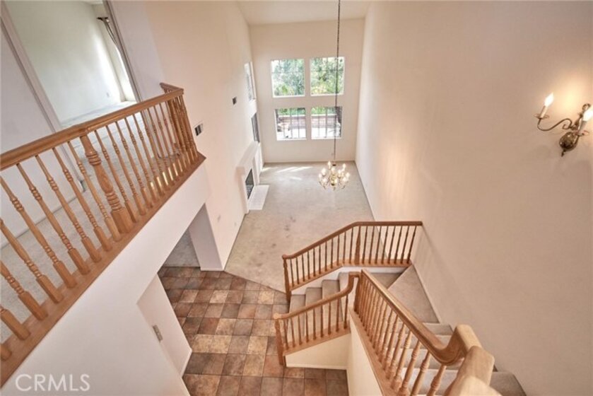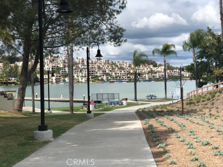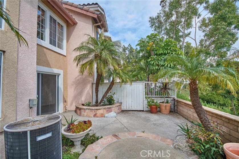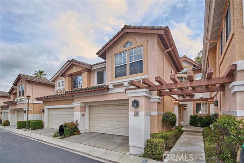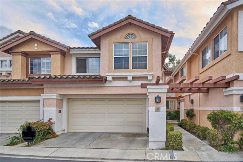 This gorgeous town-home, in an interior location, was a demo home when it was built. The floor to ceiling natural lighting from the cathedral ceilings adds natural lighting throughout the day. It has gorgeous varnished wood handrails up the staircase and along the landing upstairs, along with ample linen storage. There is a double fireplace in the luxurious dining room with a chandelier, as well as on the kitchen side which allows access to the beautiful patio area overlooking the canyon and vegetation. The master bedroom upstairs has all the space you'd desire with a private en-suite over-sized tub as well as a shower, along with a very large walk in closet. The other two bedrooms are also very nice size rooms with large windows and natural lighting, as well as closet space. The pool is right down the street and you'll have access to the private lake for fishing, boating and beach play through the Mission Viejo home ownership which has been kept up to date by the home owners association. The lake is about 4 miles away and is a very relaxing place. In addition the local little leagues have beautiful fields if you're interested in youth sports. Bring your imagination and with a little TLC this can be ready to move in.