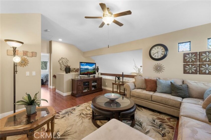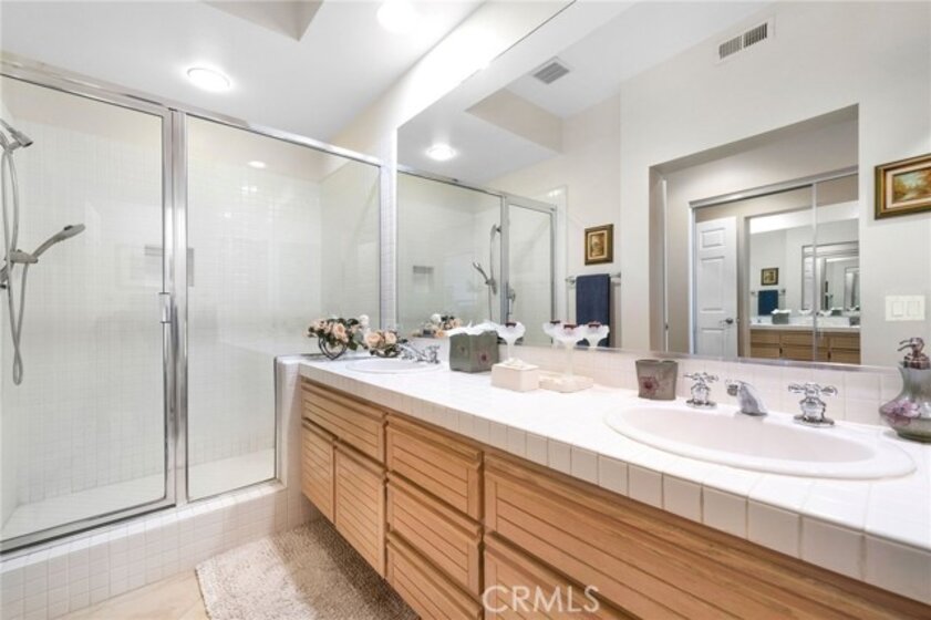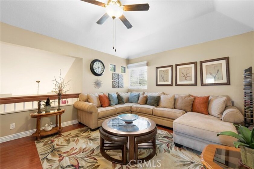 Elegant and Classy, this wonderful multi gen floor plan, comes to market in the 55+ highly coveted, guard gated, Palmia community! Boasting, incredible community amenities and this central location, sits this highly desirable and beautifully decorated home! Come through the gates into your private and lovely front garden! Enter into the double doors and notice the cathedral ceilings and rich finishes! Formal living and dining rooms greet you with warm fireplace and vaulted ceilings! Primary floor owner's suite, with a separate exit to the back yard, a large, cedar lined walk in closet and bath with walk in shower and dual vanities, grace the first floor! Laundry room is conveniently located just outside the owner's suite for ease of use. Huge windows allow fresh light to shine into the open kitchen with plenty of pantry space, lots of counter space to prep and cook and s.s. appliances. Beautiful manufactured wood flooring, neutral and light paint, custom baseboards and gorgeous curtains decorate this beautiful home! The open living and dining rooms, expansive kitchen, and powder bath, make entertaining easy! Upstairs is well suited for a multi gen living environment, a full time, live in caretaker or an expansive guest suite and separate family room! This floor plan is so desirable, as you never need to use the second floor, but if you choose to, it provides a very generous and separate living quarters, or a very comfortable and efficient office and family room away from your downstairs space. The lovely backyard beckons to avid gardeners, entertainers and those who just wish to relax offering an extensive planter, a separate access gate to the greenbelt and a alumniwood patio cover. Direct access two car garage, provides plenty of space to park, as well as storage and a little work shop area. Palmia community amenities include, 3 swimming pools, jacuzzis, tennis and pickle ball courts, bocce ball, fitness center, 18 hole putting green, library, game room, banquet room, shuffleboard and much more! Lake Mission Viejo is close by offering swimming, boating, fishing, concerts, volleyball, movies at dark in the Summertime and more! Just a short distance to restaurants, shopping, movies, Lake Forest Sports Park and Saddleback Church! This one is special, come take a peek.