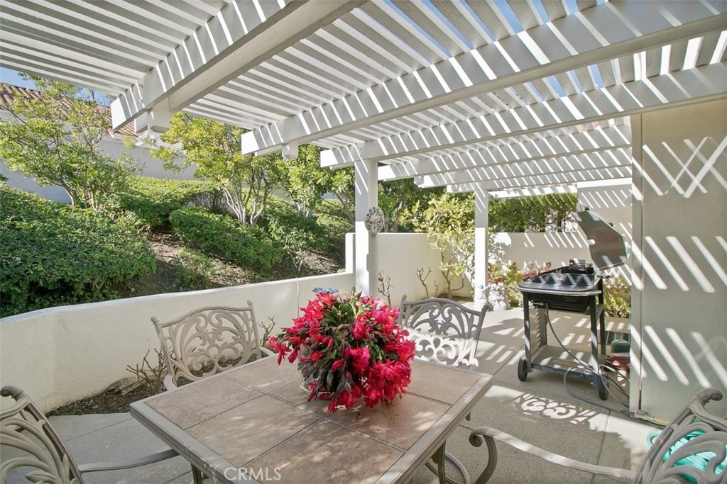 Pride of Ownership! 55+ community of Palmia! Pristine 2 Bedrooms / 2 Baths, Gated Front Courtyard, attached garage (remote and keypad entrance), custom shutters, Newer Heater & Air Conditioning unit (2014), Upgraded second bathroom, Pre-wired TV above fire place, Gas Logs for fire place, Large Refurbished Pergola Private Patio, Interior Laundry (Washer/Dryer/Refrigerator Included) Very private, quite cul-de-sac location with a greenbelt view that's close to the swimming pool. Clubhouse, 18-hole putting green, tennis courts, exercise room, pool tables and over 40 club activities with a Guarded gate.