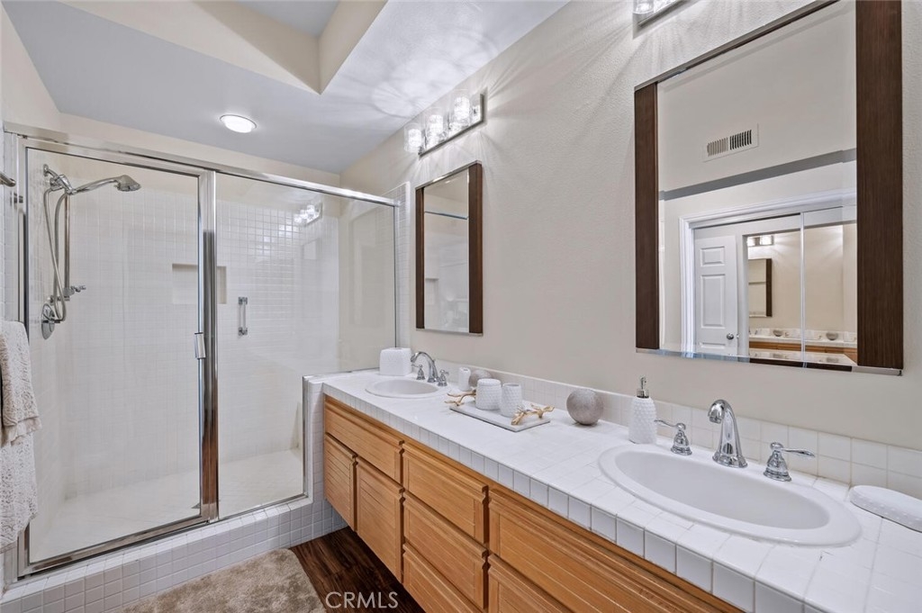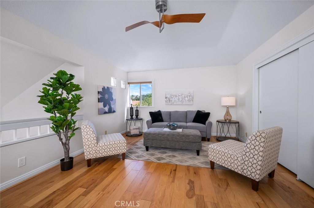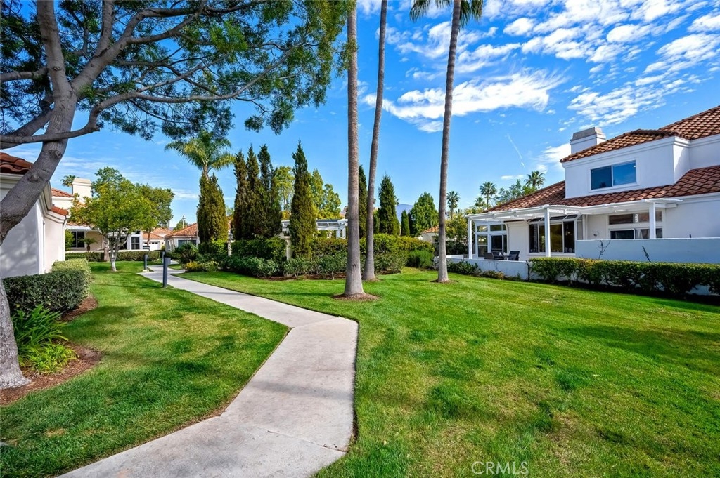 Discover this lovely home in the desirable 55+ community of Palmia! Location, Location, Location! This charming corner lot home has it's own identity. It offers 3 bedrooms, 3 bathrooms, and the bonus of a full driveway—an uncommon feature in this tract. Step inside this bright and airy home, with a neutral color palette, new carpet, and fresh interior paint throughout. The spacious eat-in kitchen boasts a bay window that overlooks the serene park-like setting. Enjoy peaceful views from the large living room with a cozy fireplace, which flows into the formal dining area. The convenient downstairs primary suite is generously sized, with direct access to the back patio and a large, cedar lined, walk-in closet. The primary bathroom offers a dual sink vanity and a spacious walk-in shower. The first floor also features a powder room for guests and a separate laundry room with storage cabinets. The attached 2-car garage provides ample storage with direct access into the home. Upstairs, you’ll find a sizable bedroom, a full bathroom, and a large loft that could be used as a home office. With the addition of a closet, the loft could easily be converted into a third bedroom or remain a flexible living space. The back patio is a true retreat, featuring an Aluma wood patio cover and tranquil views of the lush greenbelt. As part of the Palmia community, you'll enjoy exclusive access to a variety of exceptional amenities, including a clubhouse, swimming pool, jacuzzi, 18-hole putting green, fitness center, pickleball and tennis courts, a library, shuffleboard, and bocce ball. Palmia homeowners also enjoy membership to Lake Mission Viejo, with access to boating, beaches, concerts, and picnicking. Plus, shopping, dining, and entertainment options are just minutes away. Don't miss this opportunity to live in a vibrant, welcoming community. Welcome home!