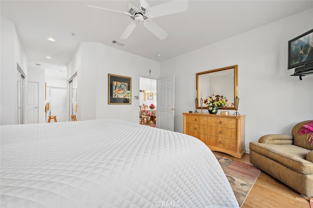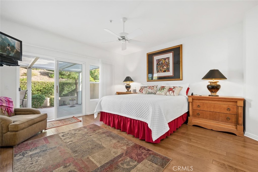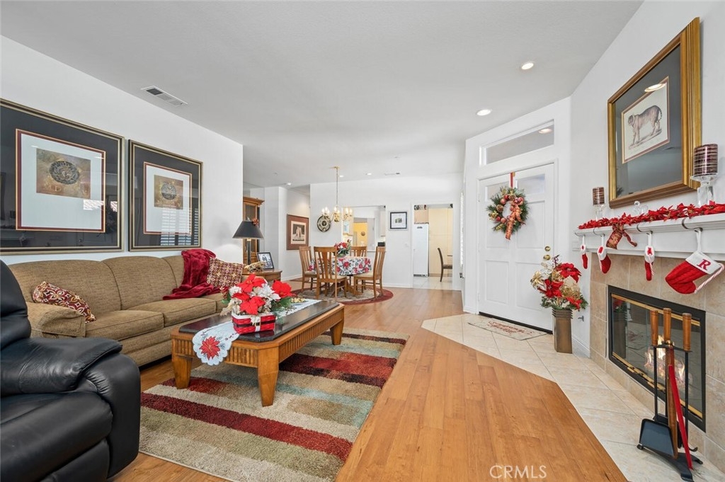 BEAUTIFULLY maintained at a Private and Peaceful location in the 55+ community of Palmia. As you enter this 2 Bedroom/2 Bath home, you step into the Great room overlooking a Meticulous Back Yard fresh with flowers and greenery. Built in Entertainment Center and cozy fireplace enhance this space. The home is designed around a Neutral Pallette with Wood floors, larger baseboards, and Plantation shutters. An adjoining Dining room can be used when extra guests arrive or a perfect area to incorporate into the Great room with a game table or additional seating area. The Kitchen has expanisve cabinetry and a Nook for dining. The Master bedroom is situalted toward the back of the home, with a Sliding door to enjoy the backyard or simply appreciate the Greenbelt view. Electric Sheer to darkening draperies are a functional touch to this Primary bedroom. Two Mirrored closets and Organizers are an added bonus. Ensuite bath with Tile flooring, Easy access shower, Dual Vanities and extra built in cabinetry throughout the Master bath. A nicely sized Secondary bedroom is located toward the front of the home complete with Closet and lovely Plantation Shutters as well. Nearby secondary full bath with Tub/Shower combination, and Tiled flooring. Indoor Laundry with Sink with included Washer & Dryer. Garage compltete with built in cabinets for added storage along with a work table. Backyard is meticulously cared for and, if you so choose, just enough planting area to garden or enjoy the outdoors as you are shaded under a patio cover. Home has been repiped. Palmia encompasses a plethora of activities including Tennis, Pickleball, 18 hole Putting Green, Three Pools,& Jacuzzi's, Fitness Room, Billiards, Clubs and the list goes on. Be as busy as you would like to be! Homeowners also enjoy the Mission Viejo Lake Association where one may enjoy the beach club, or cruise in a rented Pontoon boat - another perfect place to picnic. This home is LOVELY - make it your own !