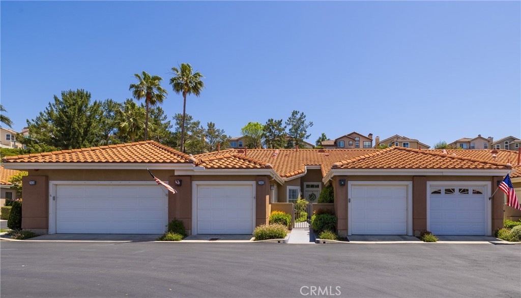 Located in the 55+ guard-gated community of Palmia, this highly updated single-story condominium features 1278 square feet of living space including two bedrooms and two bathrooms, open living / dining room, kitchen / dining nook, and inside laundry. With wood flooring throughout, the living room features a cozy fireplace with built-in entertainment center, bookshelves and storage, along with crown molding and plantation-style window shutters. The bathrooms and kitchen have been updated with quartz counter tops and renewed cabinetry. The kitchen features sub-way tile backsplash and décor, along with new(er) Whirlpool stainless steel appliances. The washer/dryer, kitchen refrigerator, spare garage refrigerator and garden fountain are included, along with two single-bay garages. Palmia residents have access to the community clubhouse, swimming pools and a host of indoor / outdoor activities. Homeowners also have access privileges to the Mission Viejo Lake activities.
