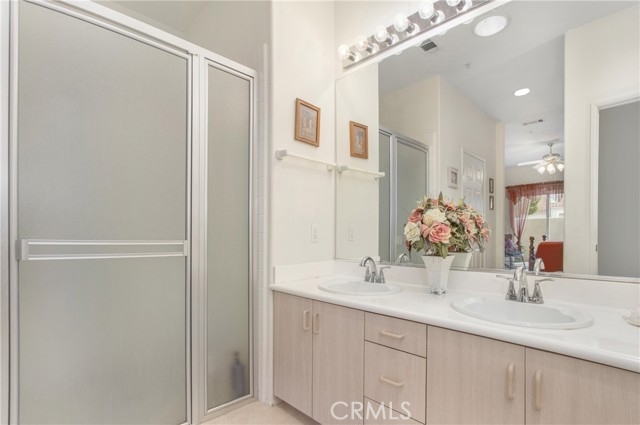 Here's a floorplan and a community designed to make your senior years your "happily ever after". Palmia offers a beautiful lifestyle, a peaceful neighborhood that has activities to keep you as busy as you want to be. Although the floorplan feels cozy and personal, this home has hosted many large, happy gatherings for family and friends of all ages. The walkway leading to the front entrance has plenty of space for flowers and shrubs for a pleasant welcome. The kitchen has an eating area and lots of cabinets. The pass-thru feature from kitchen to formal dining area makes for convenient entertaining. The living area with a fireplace has a whole wall of windows allowing natural light and a feeling of bringing the outdoors in. The Master Suite has a large walk-in closet and a no-step shower entrance. Double sinks and a skylight are also nice features. The secondary bedroom has space for sleeping as well as a desk and computer. The convenience of the inside laundry is sure to be appreciated. The unique two one-car garages is perfect -- one for your car and maybe one for storage.