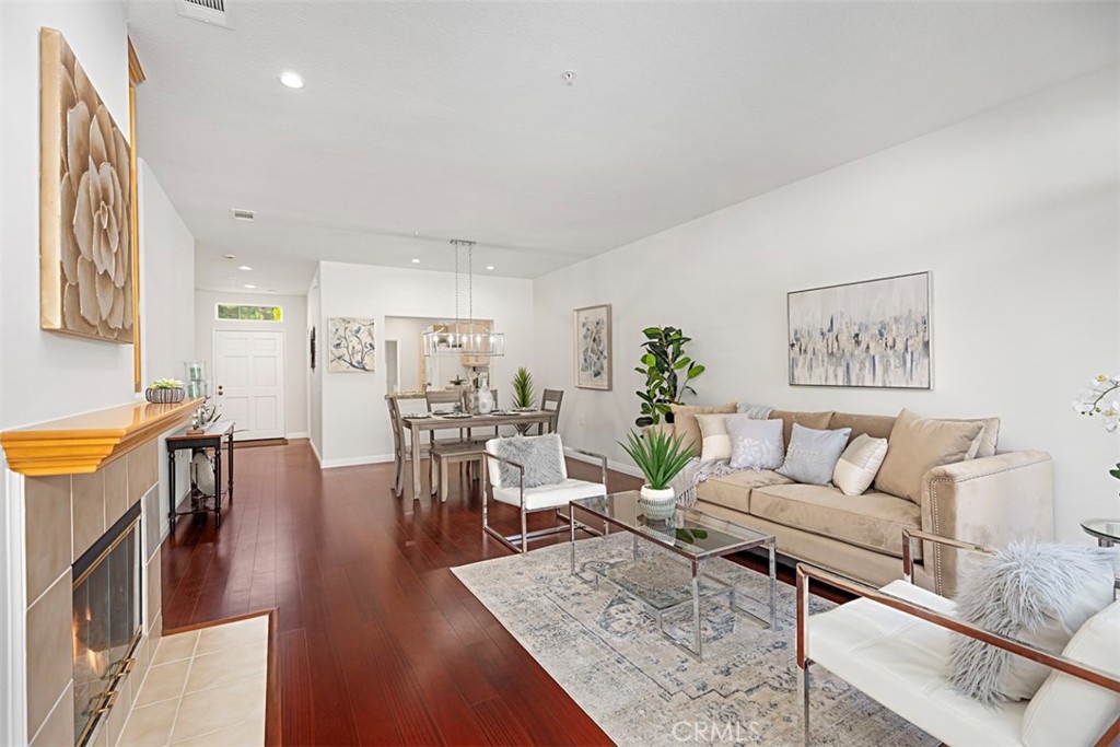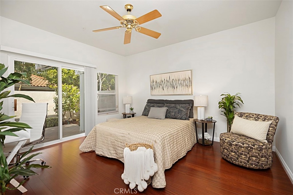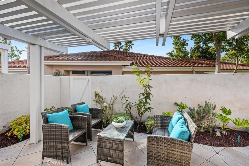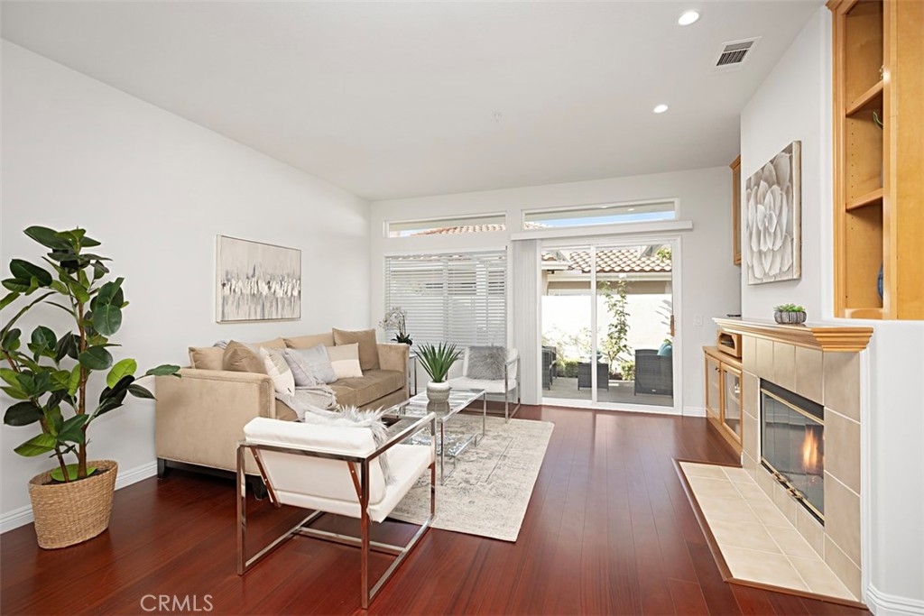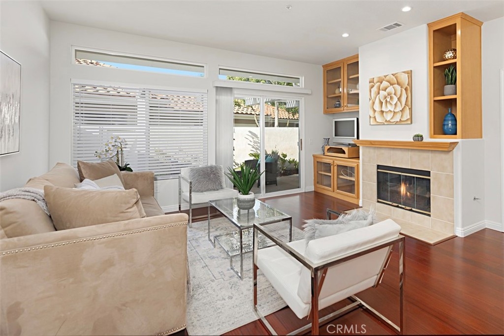 INCREDIBLE OPPORTUNITY to LIVE in South Orange County's PREMIERE Resort Style 24-Hr Guard Gated 55+ Community - PALMIA. GORGEOUS, this home is CLEAN! GREAT LOCATION in the community – Quiet & Serene. This residence is LIGHT & BRIGHT with 2 Bedrooms & 2 Bathrooms & 2 single car garages - 1 with direct access and both with epoxy floors & automatic openers. Enjoy Fresh Designer paint, Custom Built In's, Beautiful Cherry Wood floors & Gorgeous Baseboards. No detail has been missed! LARGE Eat in Kitchen with plenty of cabinetry and neutral/clean design, with Granite Counters and a New Subway Tile back splash. Living area complete with a beautiful gas burning fireplace & separate Dining area. Interior laundry room w/cabinetry. Palatial Primary Suite with walk in closet. This is a single level home, NO STEPS THROUGHOUT not even into the huge walk in shower. Living/Dining and the Large Master Suite all overlook the lovely low maintenance landscaped rear patio yard with direct sliding door access and AlumaWood style patio cover. This property has been fully re-piped. Guard gated, the Amenities at Palmia are Endless - Enjoy an 18 hole putting green, state of the art workout facility, gorgeous clubhouse, pools, spas, tennis, Pickle ball, shuffle board, Bocce, billiards, library & so much more. An abundance of planned social activities, classes & outings await you. Membership at Lake Mission Viejo too!