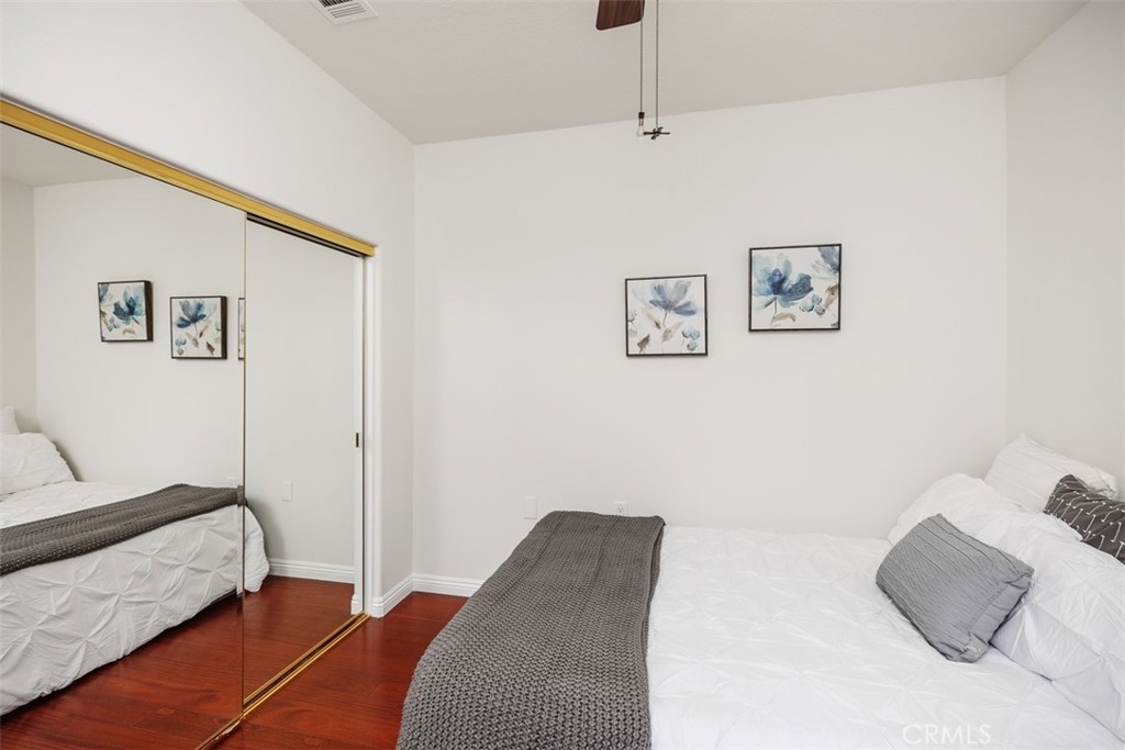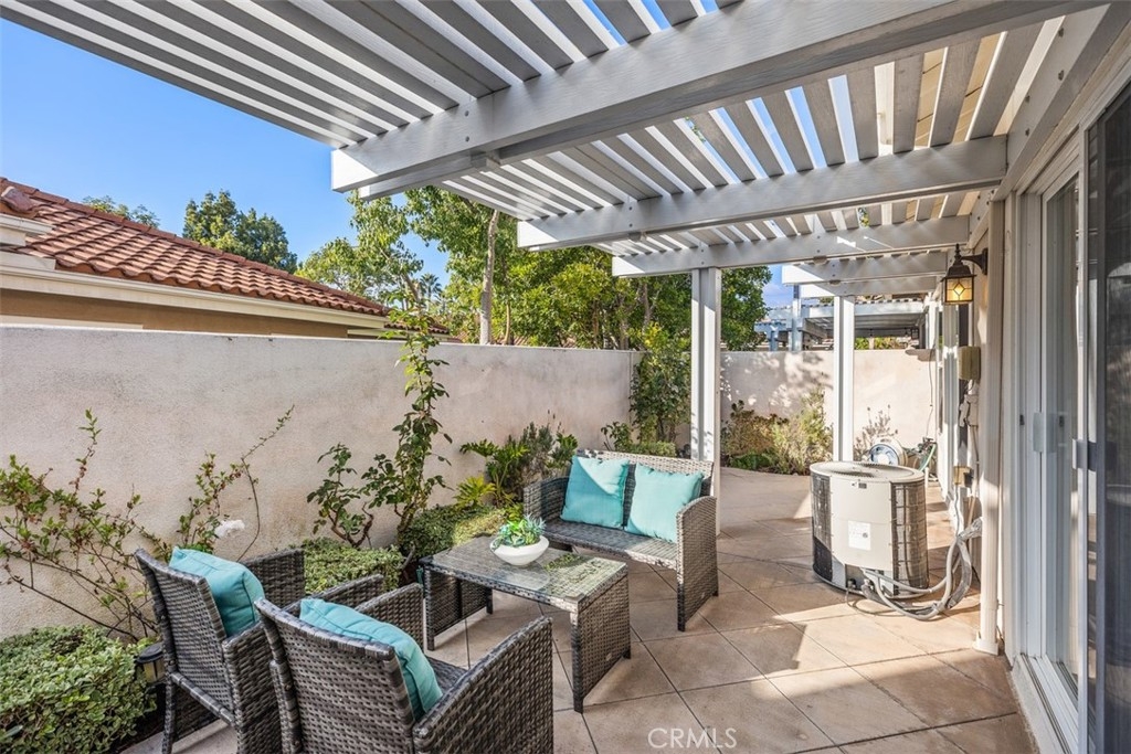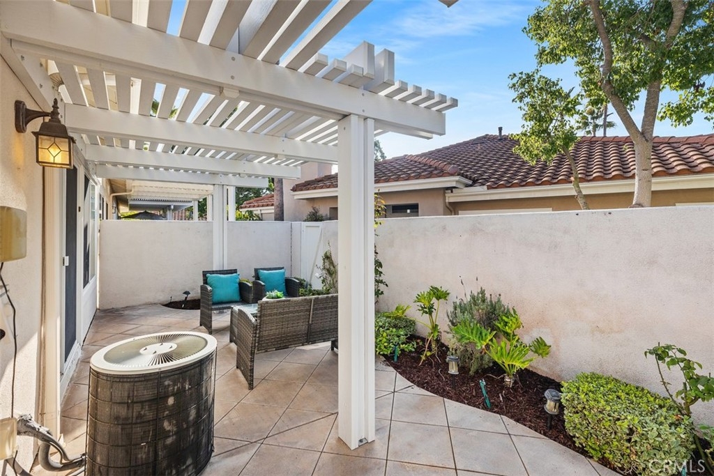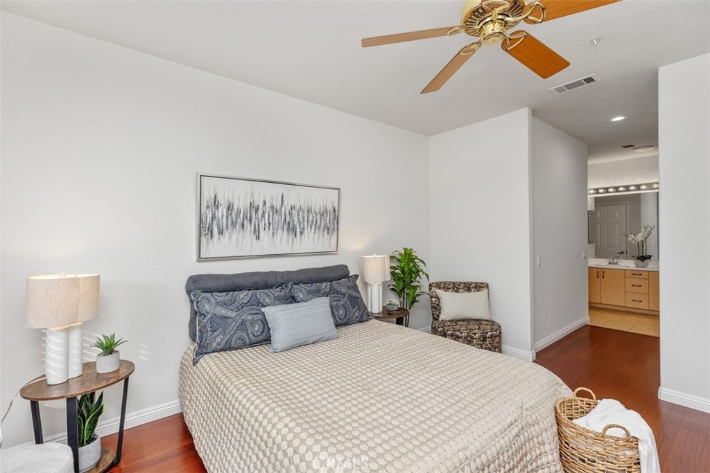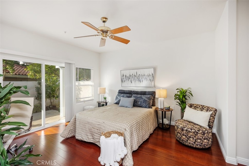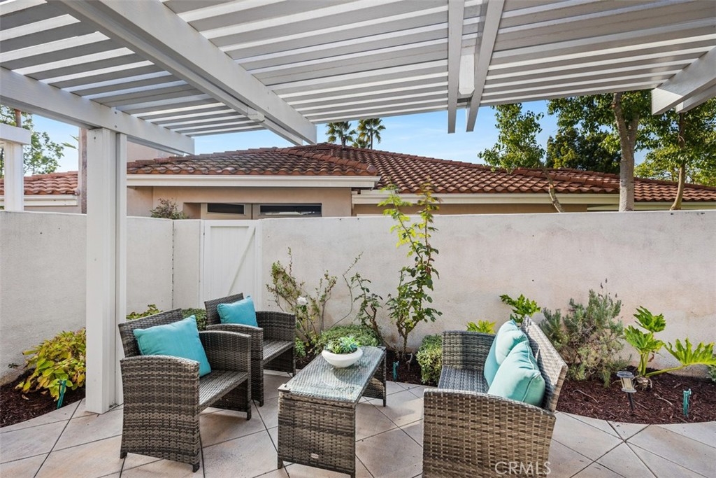 INCREDIBLE OPPORTUNITY to LIVE in South Orange County's PREMIERE Resort Style 24-Hr Guard Gated 55+ Community - PALMIA. GORGEOUS, this home is CLEAN! GREAT LOCATION in the community – Quiet & Serene. This residence is LIGHT & BRIGHT with 2 Bedrooms & 2 Bathrooms & 2 single car garages - 1 with direct access and both with epoxy floors & automatic openers. Enjoy Fresh Designer paint, Custom Built In's, Beautiful Cherry Wood floors & Gorgeous Baseboards. No detail has been missed! LARGE Eat in Kitchen with plenty of cabinetry and neutral/clean design, with Granite Counters and a New Subway Tile back splash. Living area complete with a beautiful gas burning fireplace & separate Dining area. Interior laundry room w/cabinetry. Palatial Primary Suite with walk in closet. This is a single level home, NO STEPS THROUGHOUT not even into the huge walk in shower. Living/Dining and the Large Master Suite all overlook the lovely low maintenance landscaped rear patio yard with direct sliding door access and AlumaWood style patio cover. This property has been fully re-piped. Guard gated, the Amenities at Palmia are Endless - Enjoy an 18 hole putting green, state of the art workout facility, gorgeous clubhouse, pools, spas, tennis, Pickle ball, shuffle board, Bocce, billiards, library & so much more. An abundance of planned social activities, classes & outings await you. Membership at Lake Mission Viejo too!
