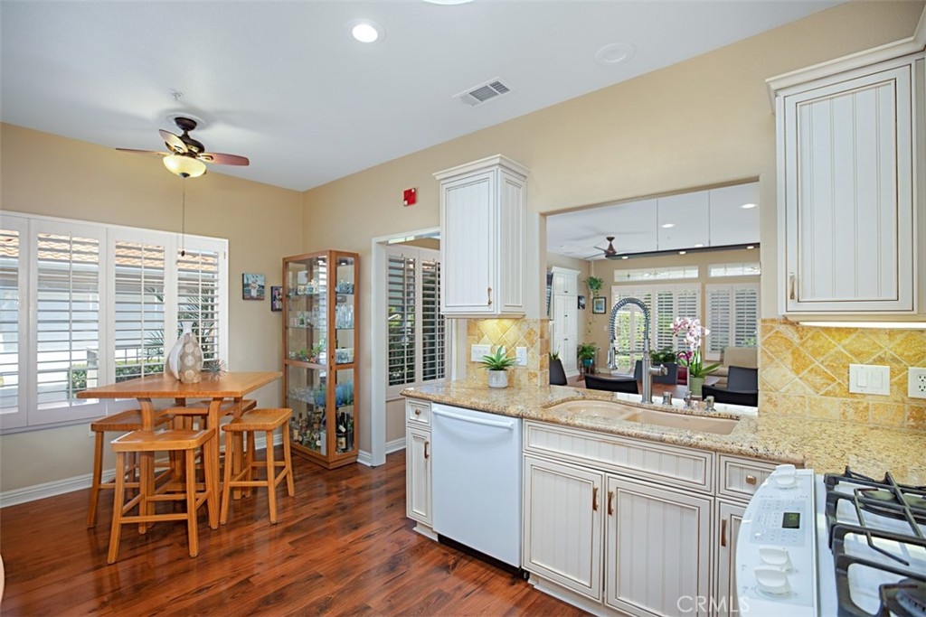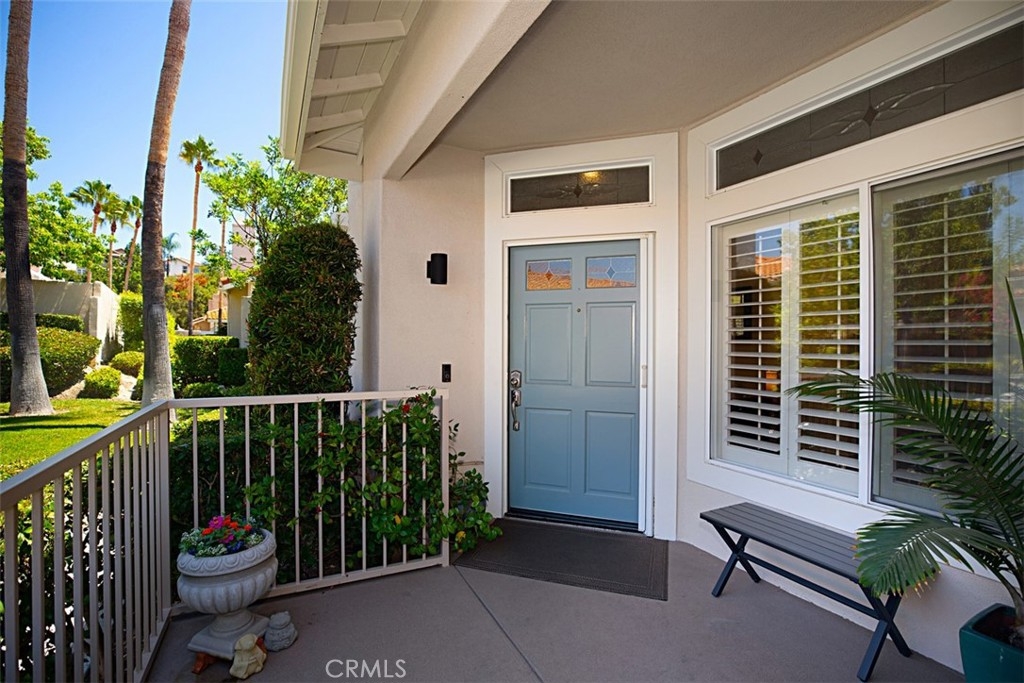 A MUST SEE!!! Spectacular Single Story Home with a Fabulous Corner Location! Welcome to the finest Palmia Courts Plan 2, You have ever Experienced! Featuring 2 Bedrooms and 2 Bathrooms with Interior Laundry and an Attached Direct Access 2 Car Garage, This Lovely Property Comes with ALL of the Bells and Whistles!! Truly Turnkey, Enjoy a Fabulously Updated Gourmet Kitchen with Beautiful Cabinetry and Granite Countertops with breakfast nook. Lovely Dining and adjoining Living Room create the Great Room Experience with Gorgeous Fireplace and Built in Cabinetry and Wood Style Laminate Floors throughout, with custom baseboards (Bathrooms have tile floors). Light and Bright with Plenty of Windows and Sliders featuring Plantation Shutters. There is a Central Vacuum and Tankless Water Heater. Newly Remodeled Bathrooms are Truly Divine, with New Vanities and Fixtures. The Master has a GORGEOUS New Walk-in Shower, and the Secondary Bathroom has a Walk-in Tub. Charming and Peaceful the Rear Yard Resembles an English Garden complete with Low Maintenance Hedges, the Sight and Sounds of a Trickling Fountain bringing serenity and peace, along with Lush Green Foliage Covering the Perimeter Walls with a Brick & Stone Patio... The Beauty and Character are Incredible... Enjoy Morning tea/coffee or Sipping on an Afternoon beverage while taking in this Most Delightful and Special Place to Call Your Own. The garage is also a Haven with Epoxy Coated Floors, an abundance of Built-in Cabinetry and Pull Down Attic Steps for Extra Storage. This home has been repiped, using PEX. HOA supplied Basic Cable TV. Front yard maintenance by the HOA. Palmia is Truly the Premiere of 55+ Communities in South Orange County. A 24 hour guard gated community offers many amenities to its Residents including: an 18 hole putting green, state of the art workout facility, gorgeous clubhouse, pools, spas, tennis, shuffleboard, pickleball, bocce, billiards & so much more. An abundance of planned social activities, classes & outings await you. Membership at Lake Mission Viejo too! This Property is Truly a Delight.