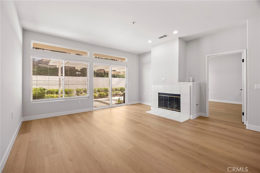 Listing Re-Launch! The market spoke, and the sellers listened. This beautifully renovated home (renovation completed 11/9) features brand-new luxury vinyl flooring, fresh designer paint, modern baseboards, contemporary door hardware, sleek ceiling fans, energy-efficient LED lighting, updated window coverings, stylish vanity lights, new faucets and fixtures, and a new dining area chandelier. All cabinets have matching pulls, and the eat-in kitchen boasts a complete suite of stainless steel Samsung appliances, including a new dishwasher. Both garages have freshly painted walls, coated floors, the included washer, dryer, and refrigerator make move-in easy. This spacious, open-concept floorplan offers approximately 1,278 sqft of living space with 2 bedrooms, 2 full bathrooms, 9-foot ceilings, and abundant windows for natural light. The large family room features a cozy fireplace, while the kitchen includes a breakfast nook, generous counter and cabinet space. The primary suite offers a ceiling fan, sliding glass door to a serene backyard, and a luxurious bathroom with dual sinks, ample storage, a walk-in shower, and a walk-in closet. The secondary bedroom is perfect for guests or a home office. Located in Palmia, a gated 55+ community, residents enjoy a resort-style clubhouse and amenities including a pool, spa, tennis courts, pickleball, an 18-hole natural grass putting green, and multiple community activity rooms. Lake Mission Viejo access is included, and HOA fees cover cable and internet services.