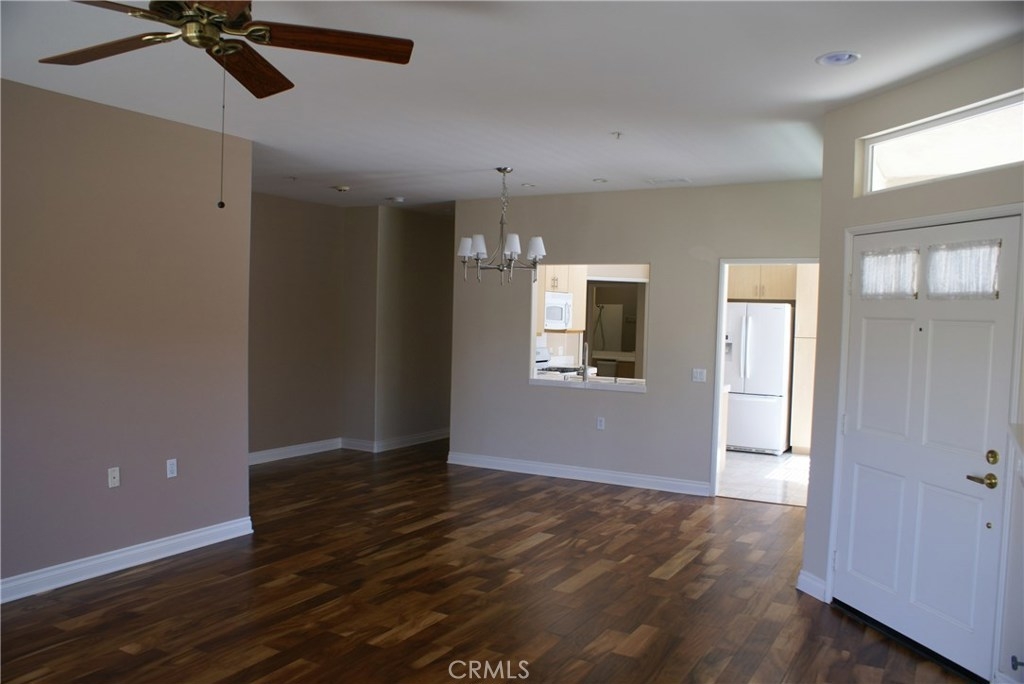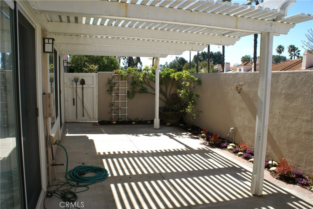 A sought after plan 2, in beautiful Palmia in Mission Viejo, south Orange Counties premier 55 +community. The home is in original but excellent, move in condition with beautiful manufactured "Tobacco" hardwood floors throughout. The patio is freshly landscaped in colorful low-care plants with automatic sprinklers and a bubbling fountain. An end unit, with no neighbor behind, with a very open sunny feeling. The home includes a washer (brand new, never used), dryer, refrigerator plus an extra, full sized, refrigerator in the garage. The living room has a cozy fireplace. The Master bedroom has dual sinks, and mirrored wardrobes and the laundry room has a fold out ironing station including the iron. The roomy 2 car garage has an inside entrance to the laundry room and hence the kitchen, convenient for easy access when returning from shopping. There is a neighborhood pool and spa right around the corner, plus your buyer will have all the amenities offered by the Lake Association. Take the grand kids sailing, trout fishing, 4th of July party, picnicking, sandy beaches and wonderful summer concerts, and Palmia has a fabulous Clubhouse with an 18 hole putting green, tennis and paddle tennis courts, work out center, large swimming pool, perfect for doing laps, spa, pool room, bocce ball, shuffle board, well stocked library filled with mysteries and romance novels plus numerous social events, clubs, and every opportunity to meet new friends and old. New "Pex" plumbing in 2017.