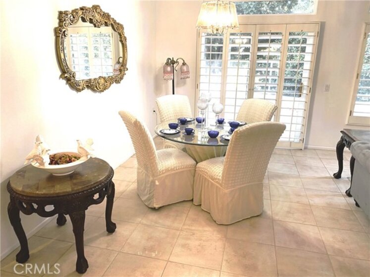Beautiful 3 Bedroom, 2 Bath, Single-level End Unit home with a much sought after Full-sized, 2-car Driveway located in the very desirable 55+ Guard Gated community of Palmia in Mission Viejo. A wall in the third bedroom was removed, opening it to the spacious Kitchen. The door to the room from the hallway, as well as the closet, remains in place. The room could easily be converted back to a private bedroom or continue to be used as a TV room or dining area. This home features plenty of natural light with shutters and blinds throughout. The expansive Eat-in Kitchen features a gas range & convenient Island. The Primary Bedroom includes a ceiling fan and access to the large outdoor space via a sliding glass door. The Primary Bath features dual sinks and a walk-in shower with no step. Other features include a fireplace in Living Room, high ceilings, hard surface/tile flooring and recessed lighting throughout. The separate inside laundry room includes plenty of cabinets and a utility sink. The 2-car garage can be accessed directly from inside the home. The home has been re-piped and has no Mello-Roos. The Association clubhouse and amenities includes 2 pools, spa, putting course, tennis, activities, cable service and more.