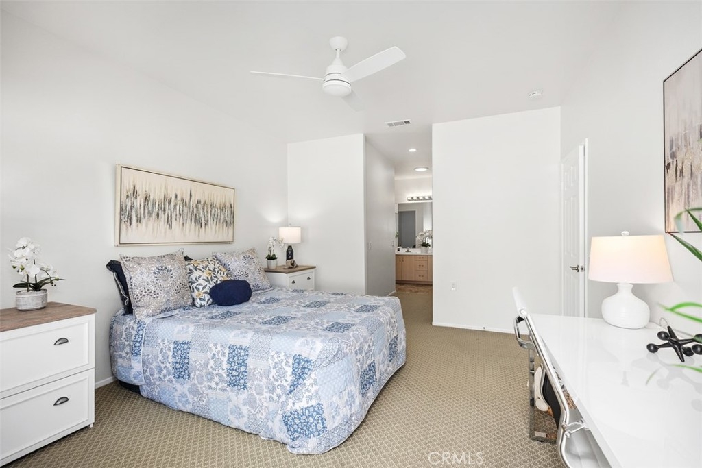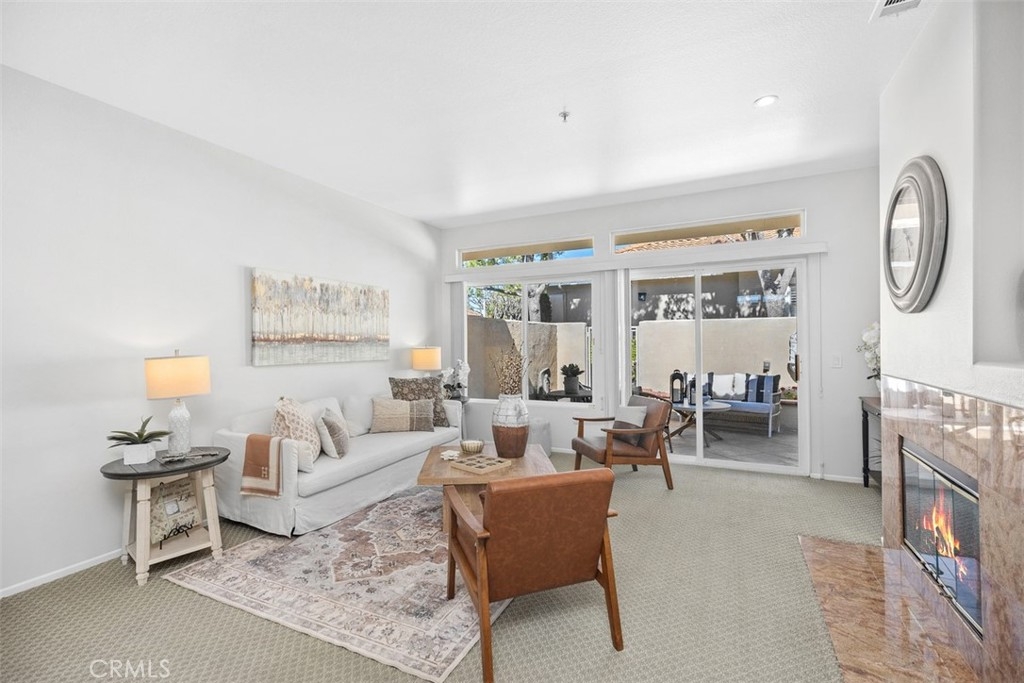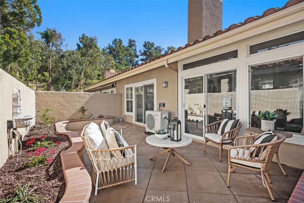 Resort-Style Patio Home/Condo in Mission Viejo’s Premier 55+ Community of Palmia. Discover the ultimate in active adult living in this beautifully updated single-story condo located in the sought-after guard-gated community of Palmia. Designed for comfort and ease, this no-steps home offers bright, open living spaces and stylish modern updates throughout.brand Step inside to find a freshly updated interior featuring designer paint, new lighting and fixtures, ceiling fans, and a brand-new HVAC system for year-round comfort. The open-concept great room is anchored by a cozy gas-burning fireplace and seamlessly flows into the dining area and open niche kitchen, complete with a brand new suite of stainless steel appliances. The spacious primary suite offers a peaceful retreat with a lighted ceiling fan, large walk-in closet, and a beautifully appointed primary bath featuring a walk-in shower, dual-sink vanity, and private toilet area. Both the primary suite and the living area open to a lovely patio yard, enhanced with newer landscaping and a sprinkler system—perfect for morning coffee or entertaining friends. A secondary bedroom with a large picture window and lighted ceiling fan, plus a separate full bathroom, provide comfort and flexibility for guests or a home office. Separate interior laundry room. Enjoy two attached single car garages, both with automatic doors. Property has been re-piped with PEX. Such a sage and gorgeous gated community... Enjoy all that Palmia has to offer, including resort-style amenities such as a clubhouse, pools, spa, fitness center, pickleball and tennis courts, a world class 18 hole putting green, table games, card rooms, billiards, library, a grand ballroom, and countless social activities—all within the heart of Mission Viejo. Additionally, exterior maintenance of the dwelling including front landscape, basic cable with several premium channels and WiFi are covered by the HOA. Life simplified! Enjoy Lake Mission Viejo privileges too!